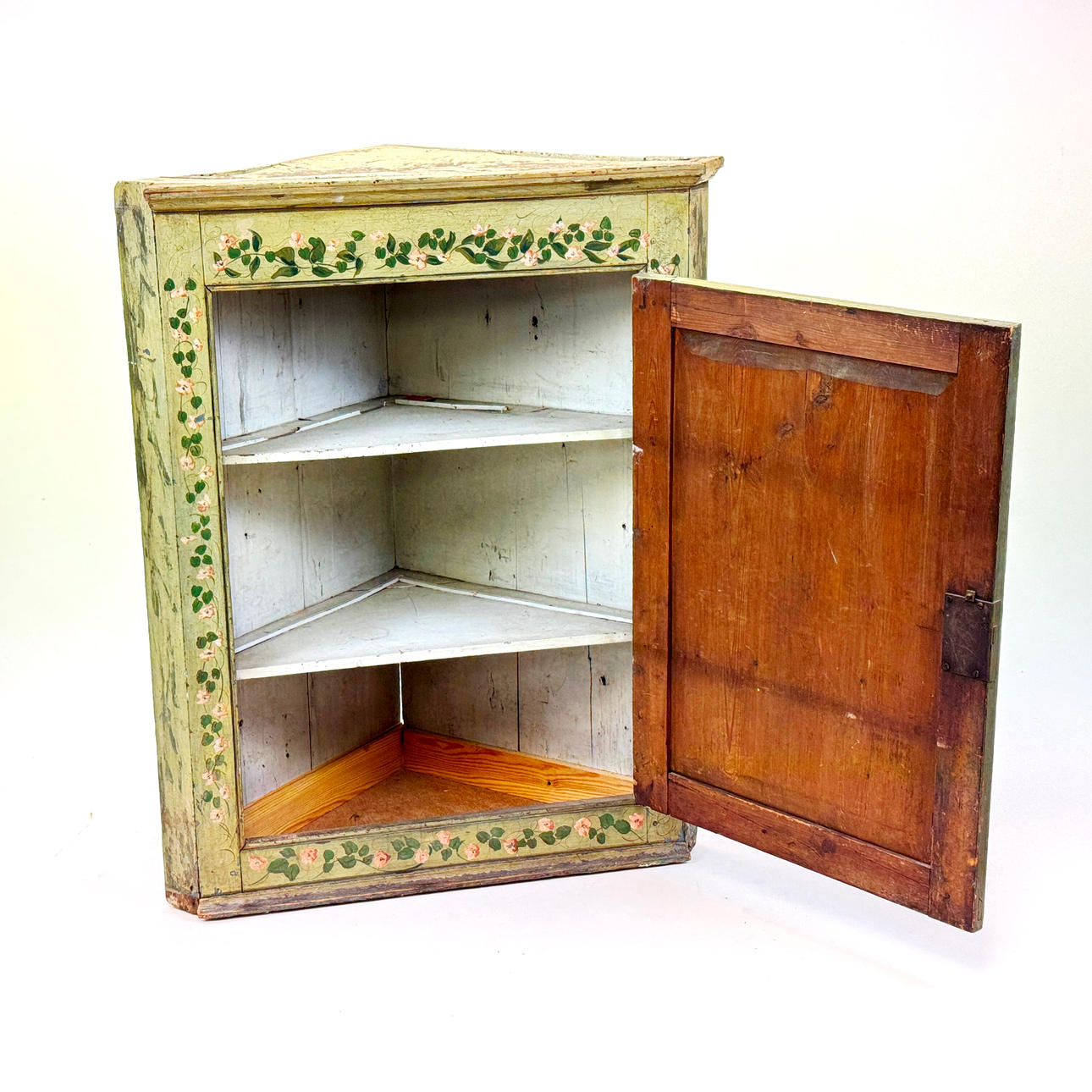 HÖRNSKÅP, engelsk handmålad furu, 107 x 85cm, 1700-tal.