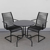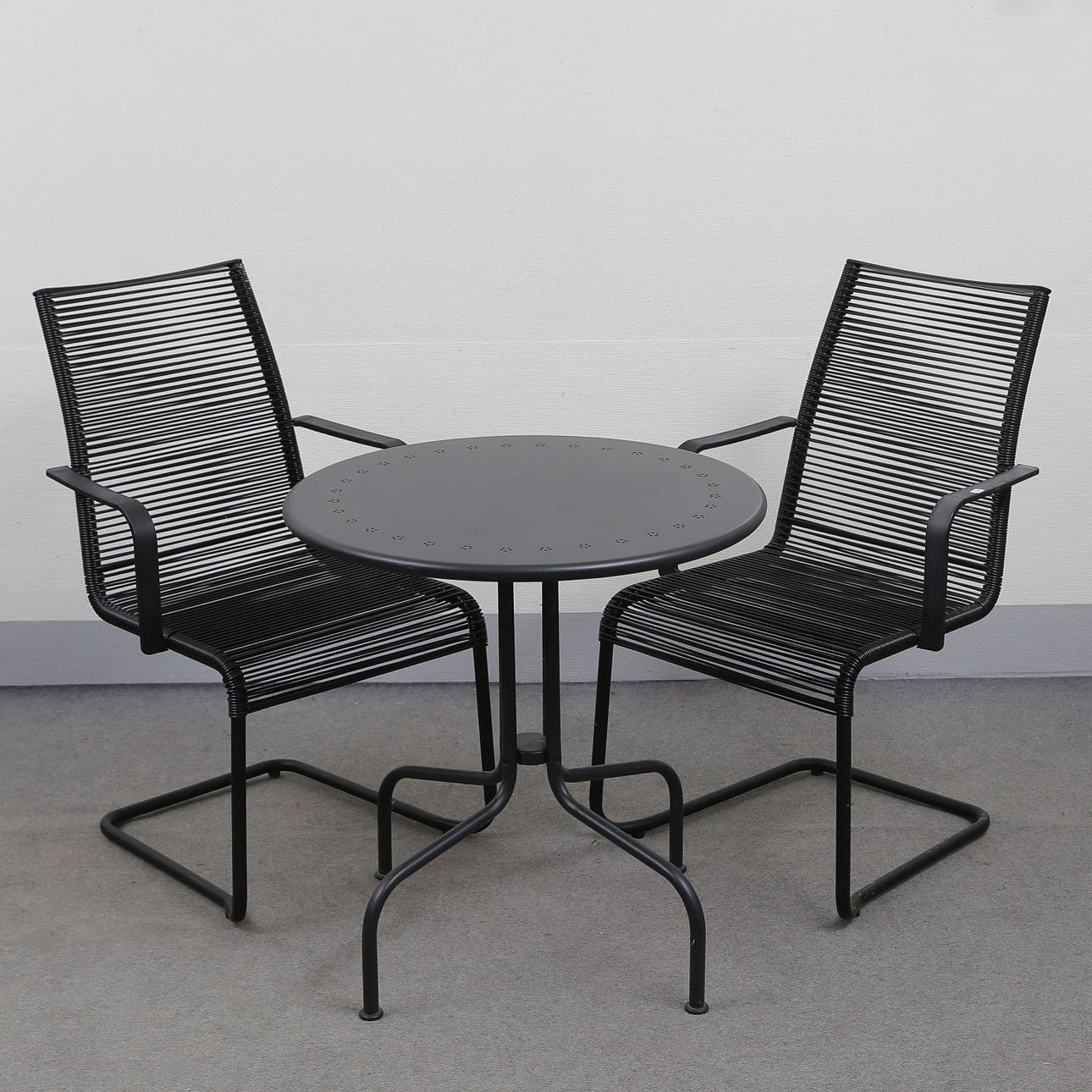 Bord höjd 71, diam 70 cm Stolar höjd 92, bredd 55, sitthöjd 44 cm.