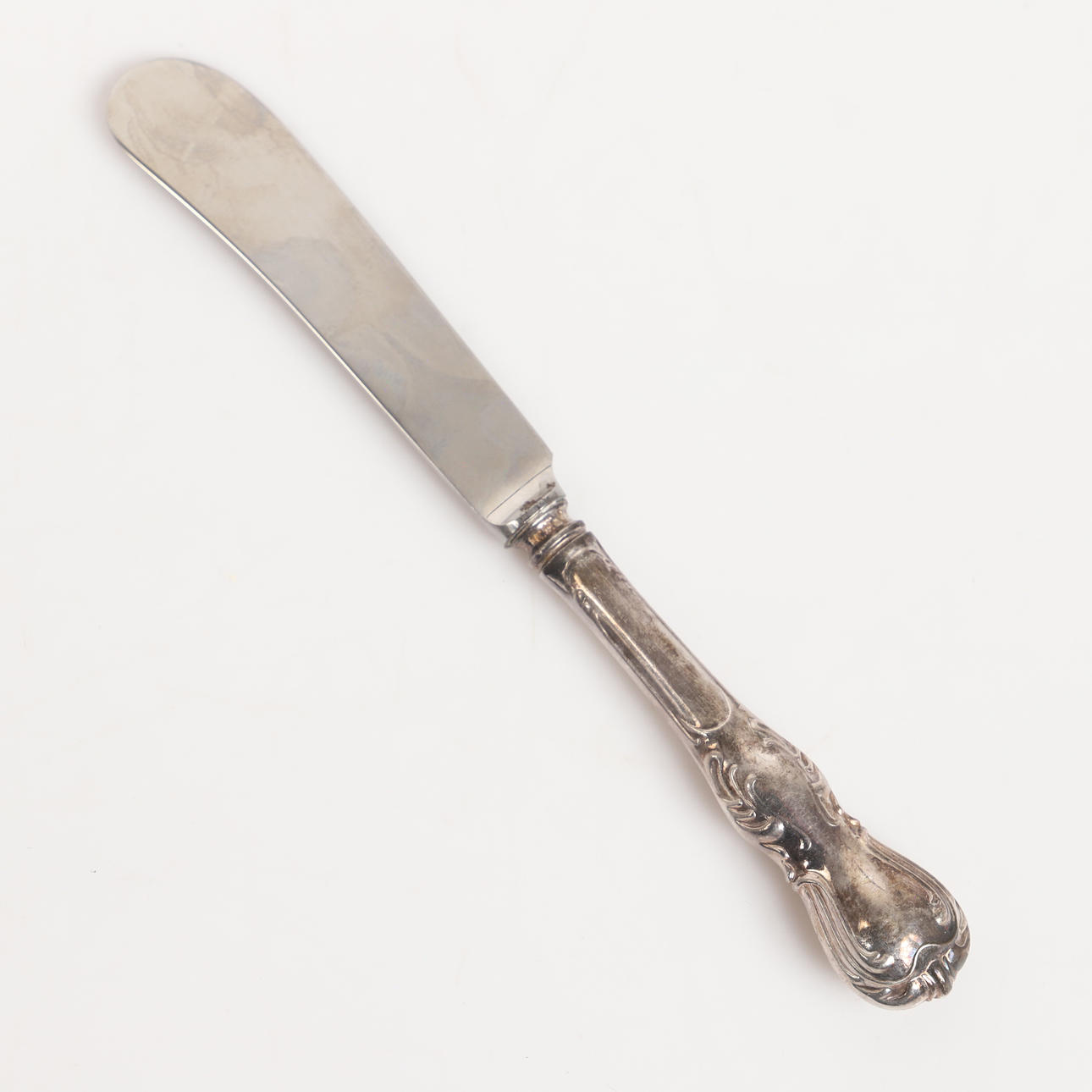 1 smörkniv med rostfritt blad, längd 17 cm, vikt 37,5 gram.