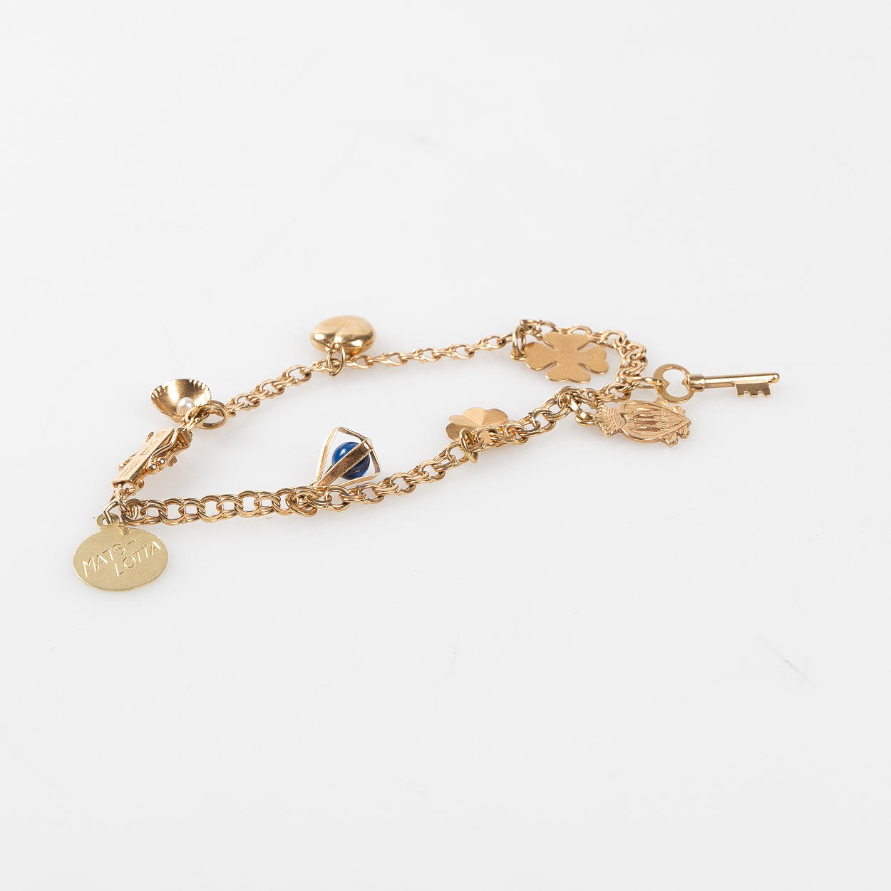 Bismarcklänk, kistlås med säkerhetshakar. 8 berlocker (1 i 14K guld). L ca 18,5 cm. Vikt ca 10,0 gram.