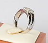Besatt med 16 stycken briljantslipade diamanter på totalt ca 0,32ct. Bredd 10,4 mm Vikt 13,6 gram. Ringstorlek 19 mm.