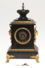 Mässing och svart sten. Blåemaljerard urtavla. Nyckel och pendel finns. Höjd 41 cm.