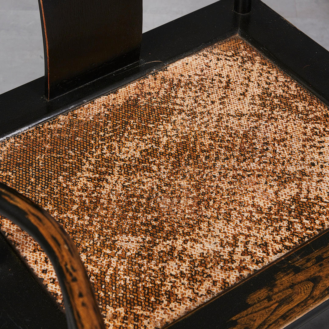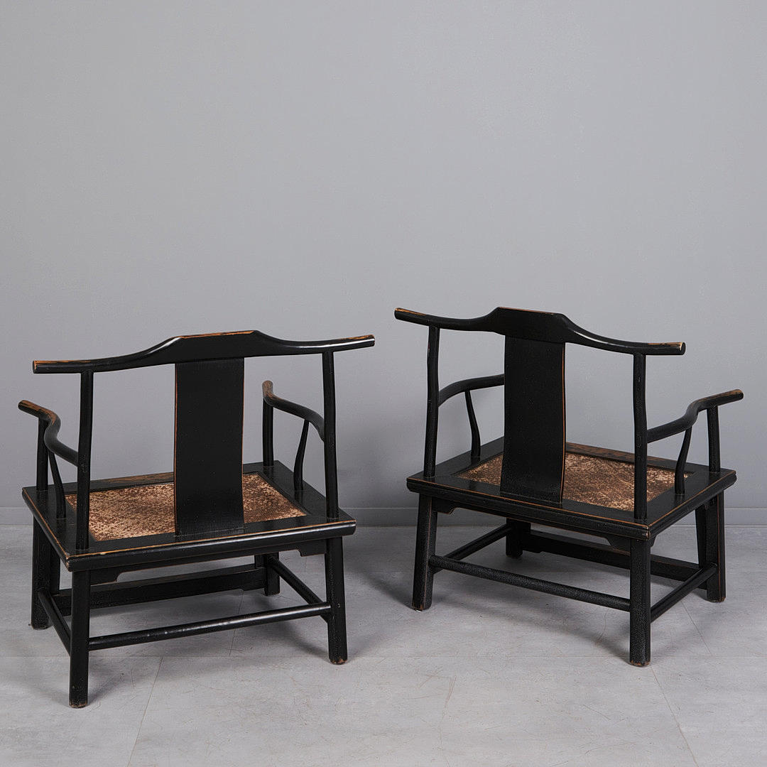 4091527. Två fåtöljer/stolar, trä, lackerad, korg, Asien (2).