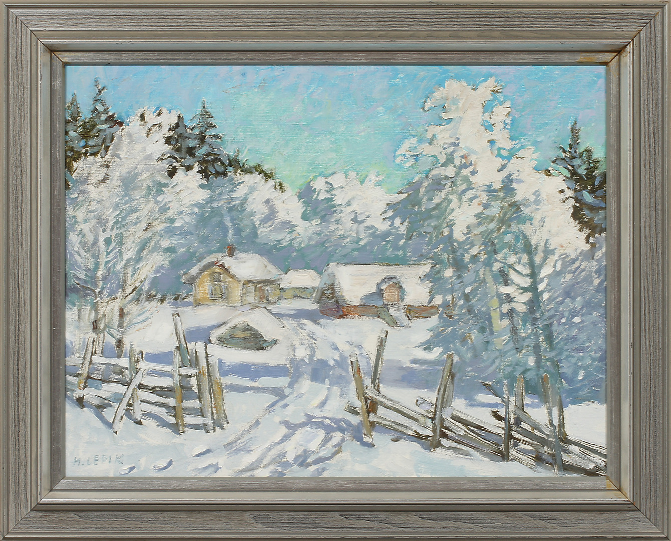 409267. HUGO LEPIK. Vinterbild, olja på duk, signerad.