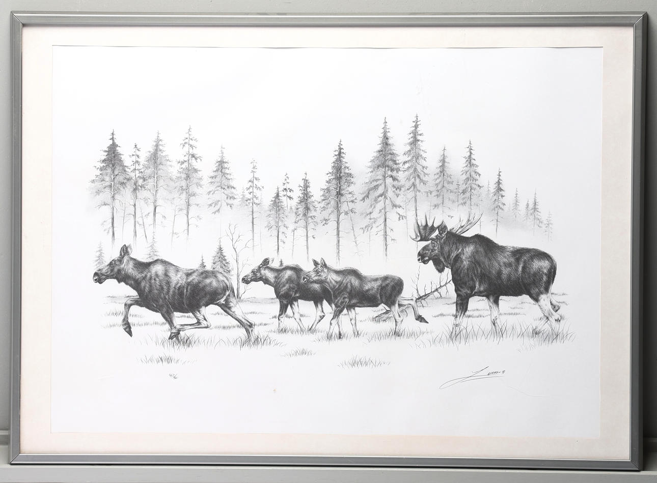 4093006. LARS NERMAN. 3 delar, teckningar, signerade, daterade.