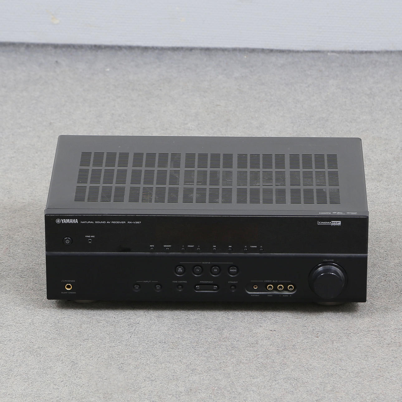 Yamaha reciever model RX-V367 höjd 15, längd 43, djup 28 cm.