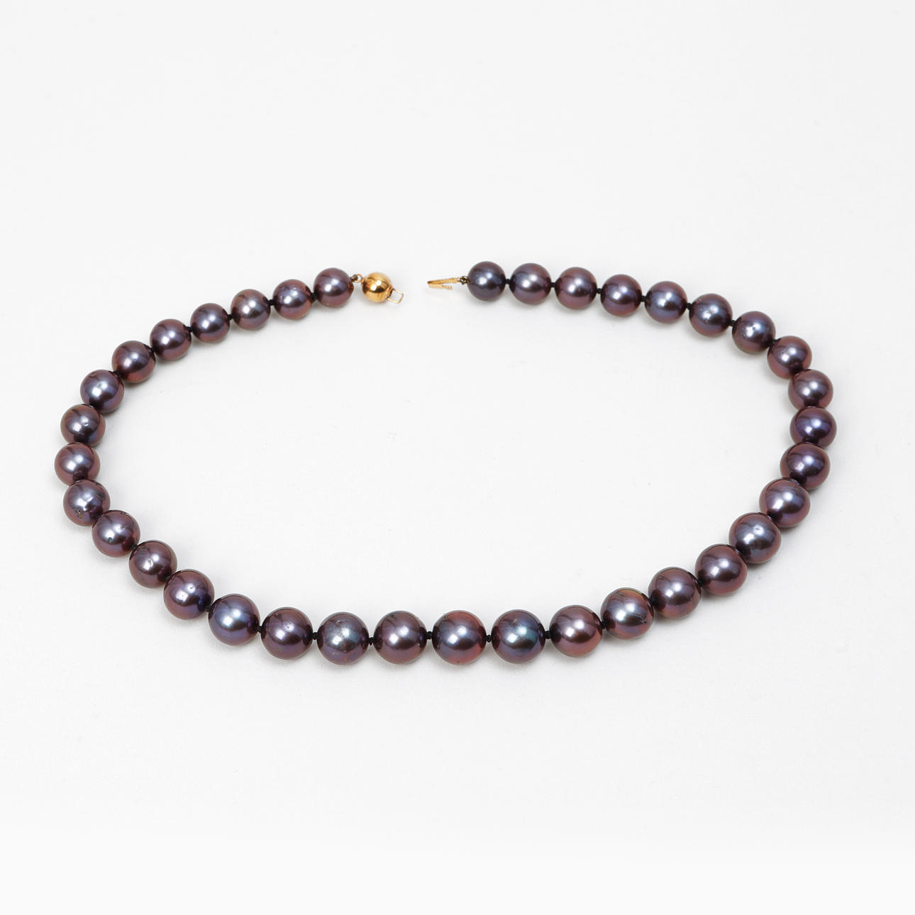 Doserad, pärldiameter ca 10 - 12 mm. Längd collier ca 46 cm. Certifikat medföljer.