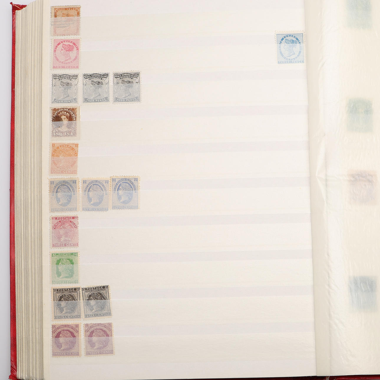 Samling i insticksalbum med 48 sidor. New Foundland, New Brunswick, Prince Edward Island, Nova Scotia, obeg.-beg. med dubbletter.