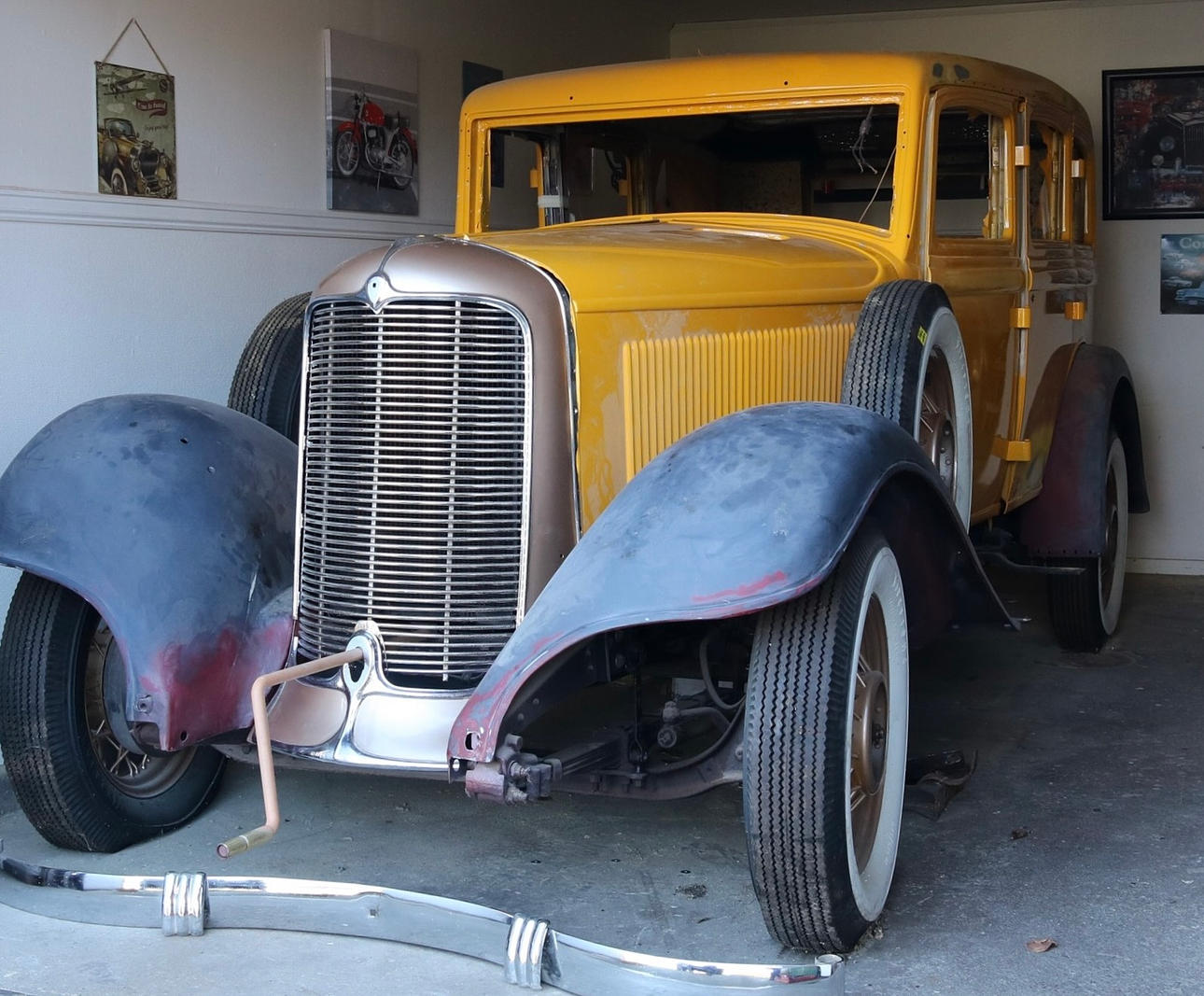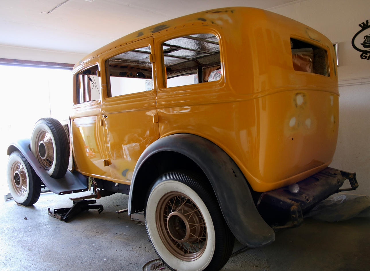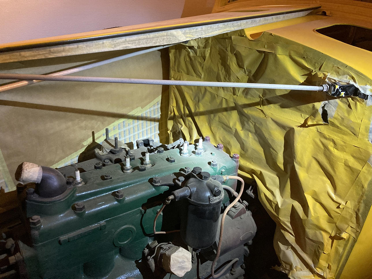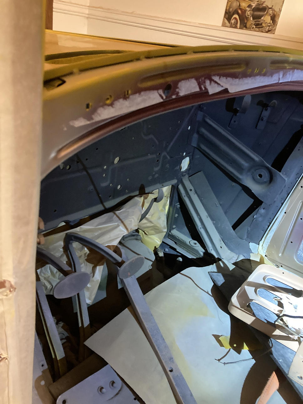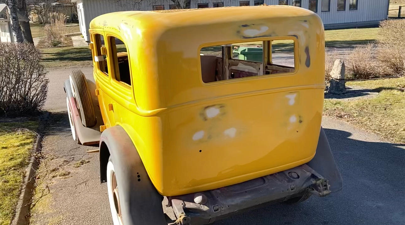 - Kaross och plåtdetaljer är slipat och grundfärg lagt ett lager, en del smådetaljer färdigmålat