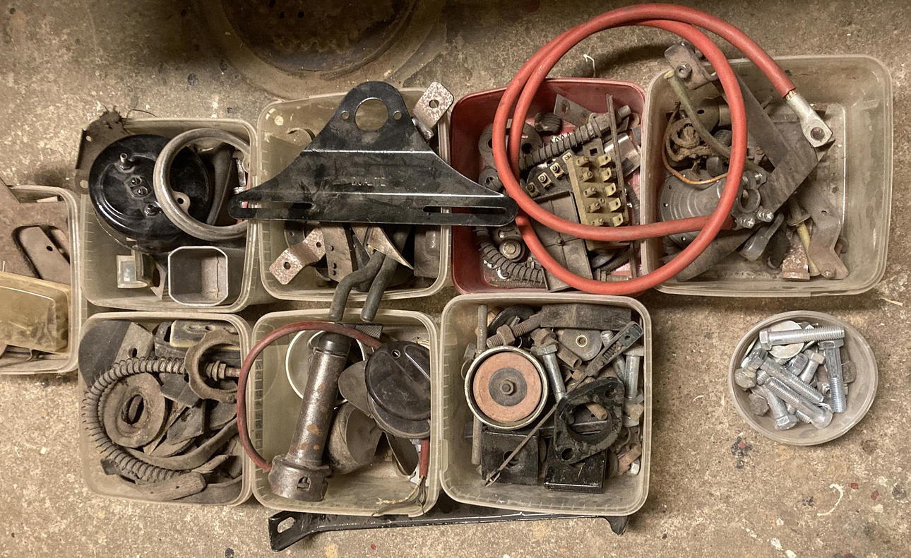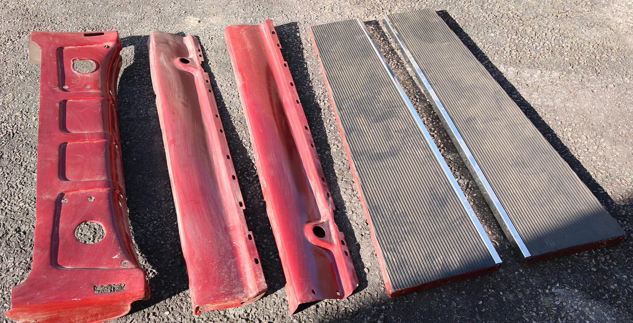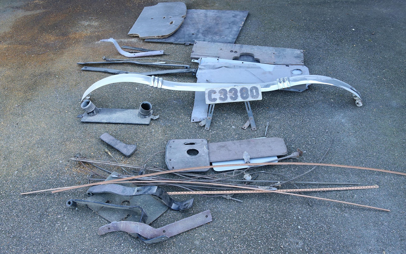 -Kaross och plåtdetaljer är slipat och grundfärg lagt ett lager, en del smådetaljer färdigmålat