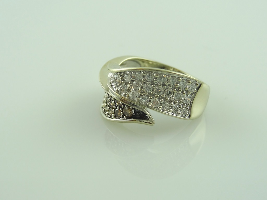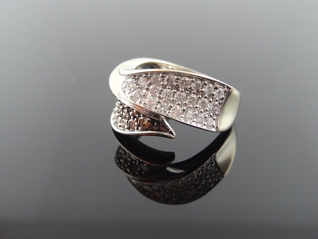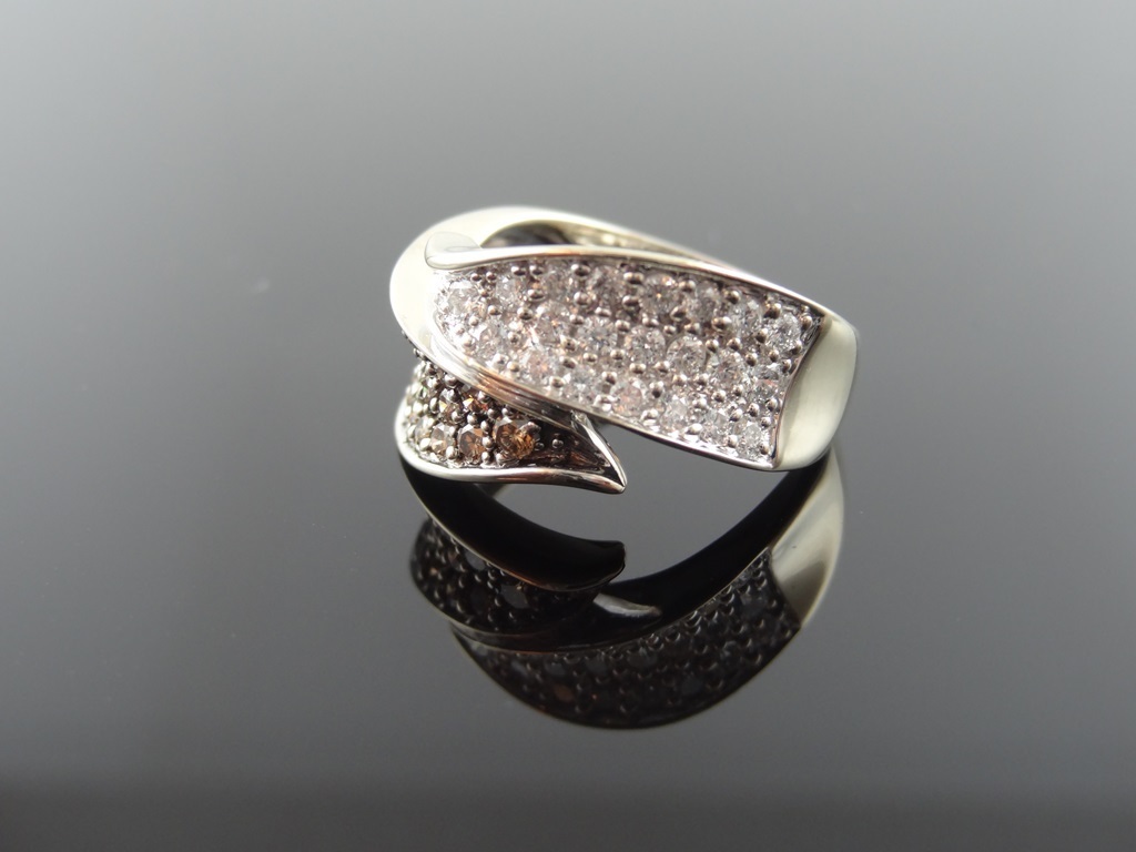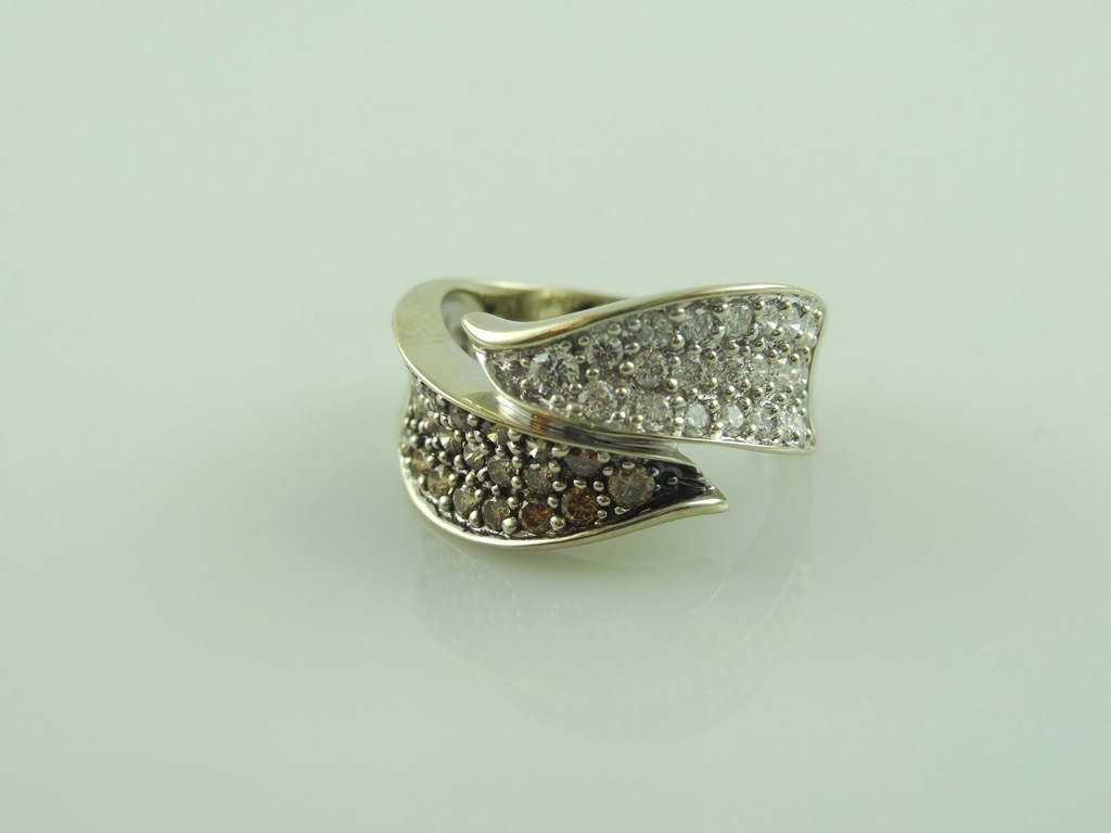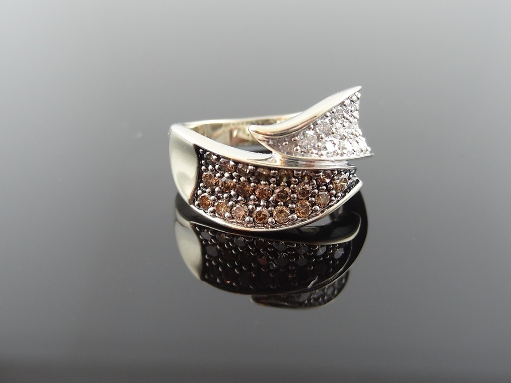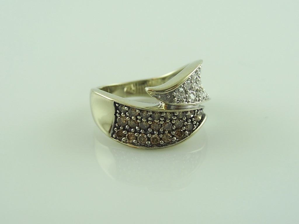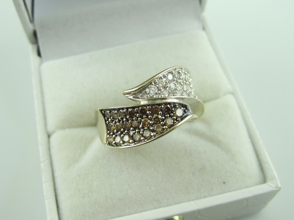 410636. Chokolate & vit diamantring 1,50cts 14 k guld.
