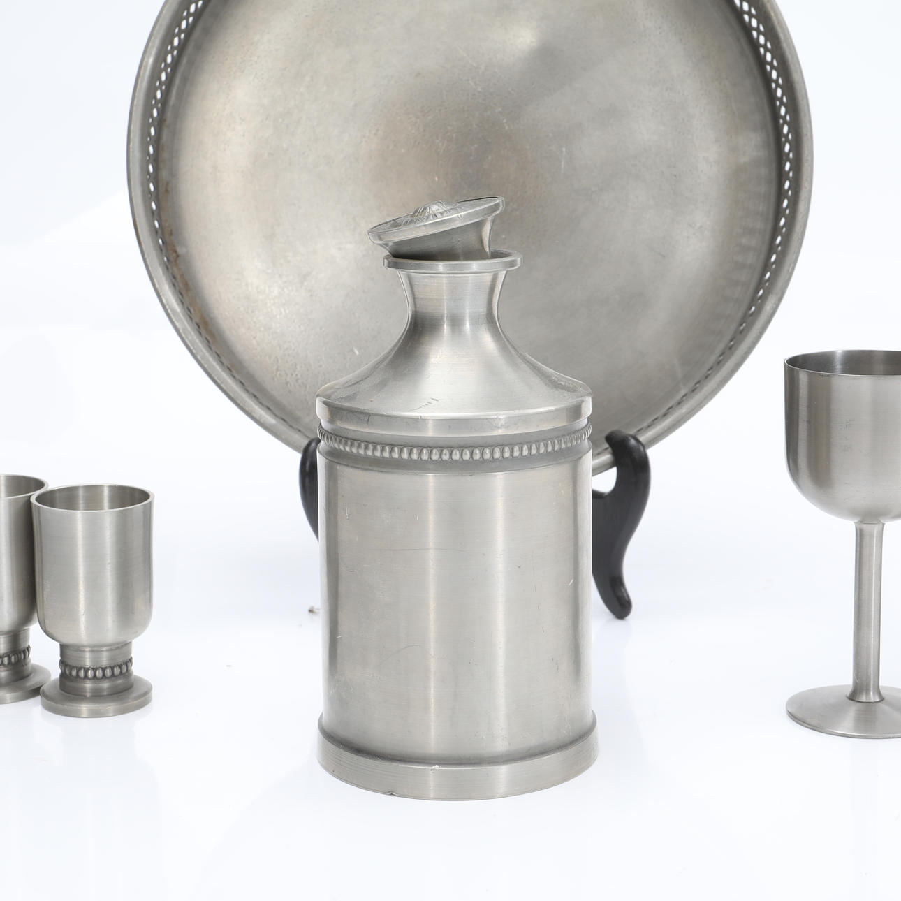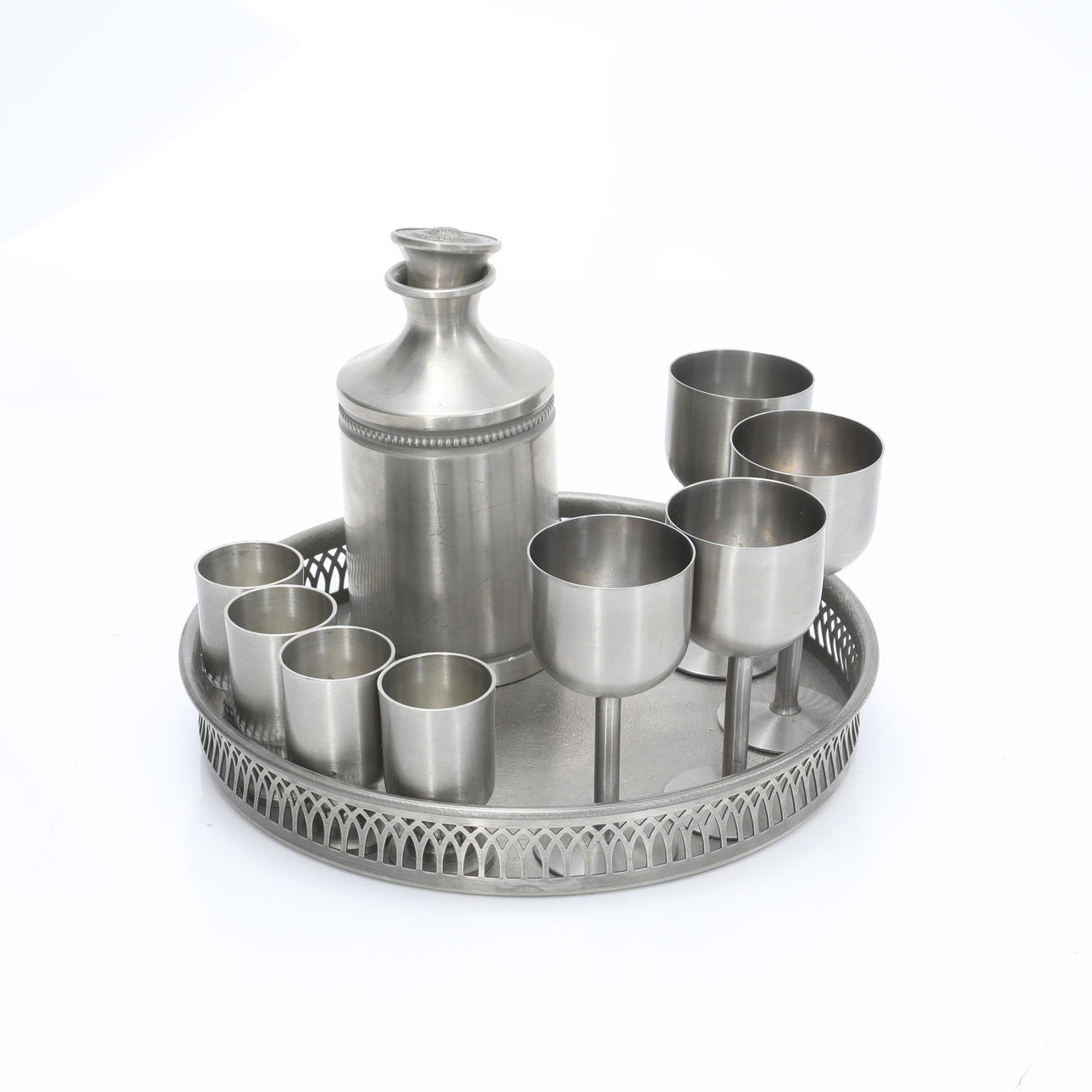 Karaff höjd ca 16 cm Glas höjd ca 11 cm Glas höjd ca 6,5 cm Bricka diameter ca 24 cm.