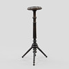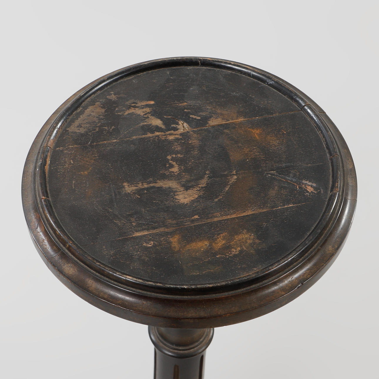 Svärtat trä. Kannelerat ben på tripod. Höjd 92 cm.