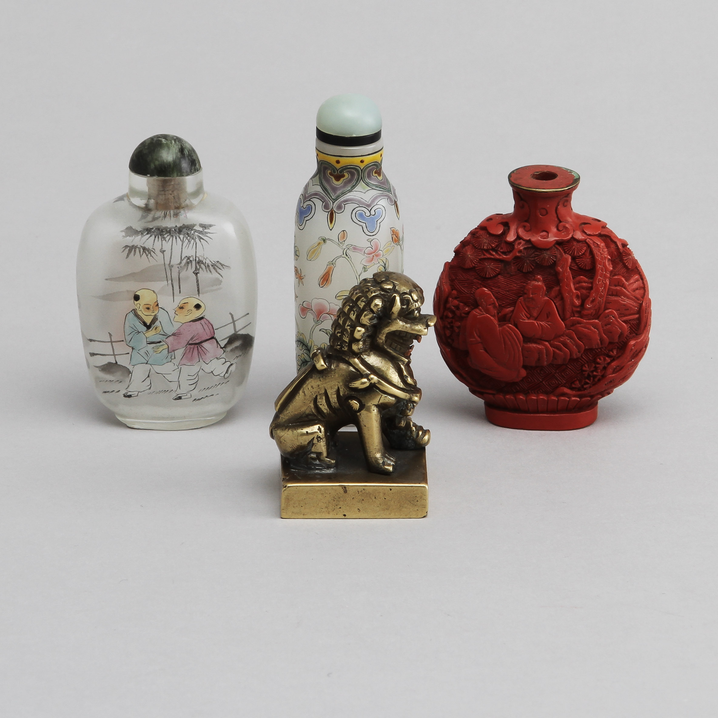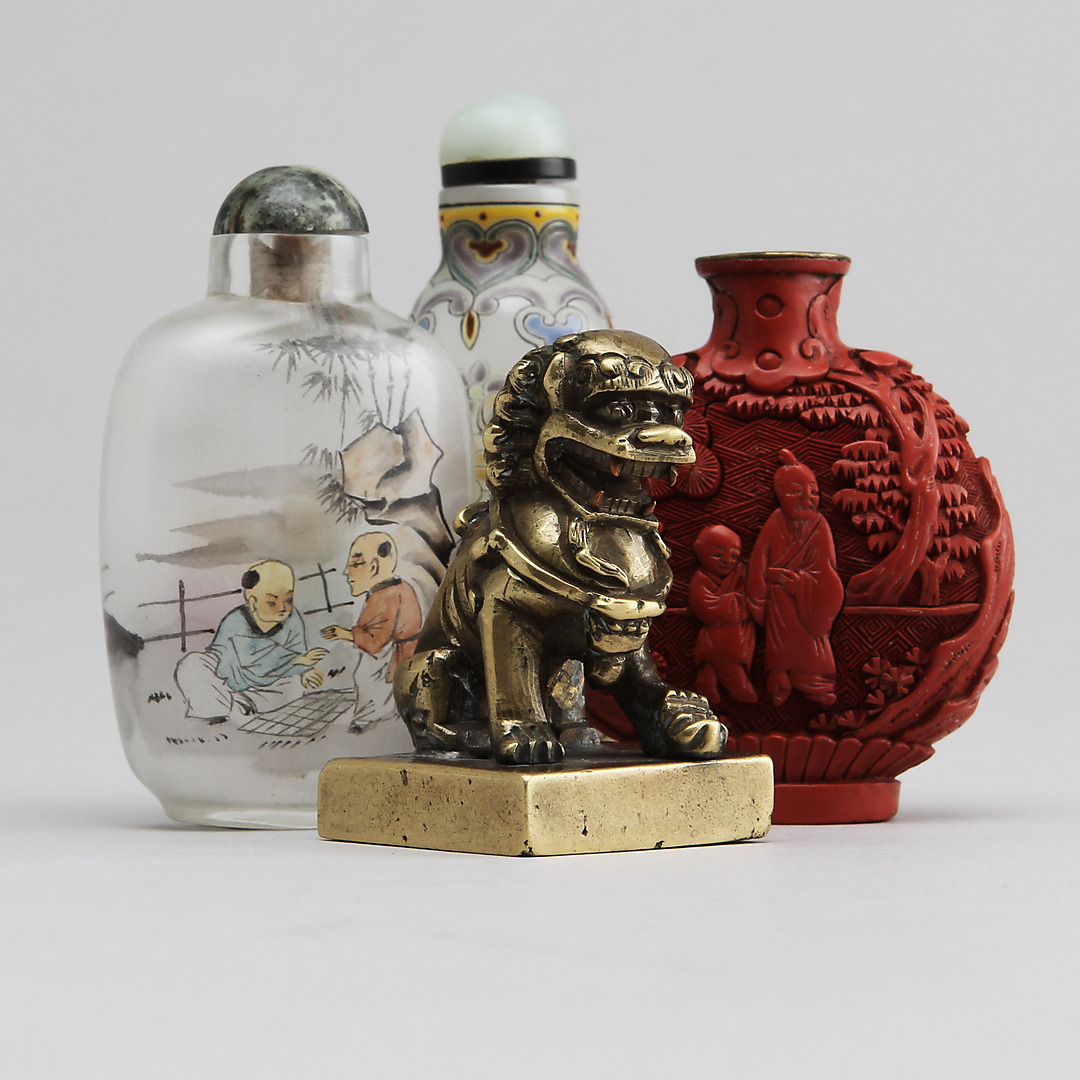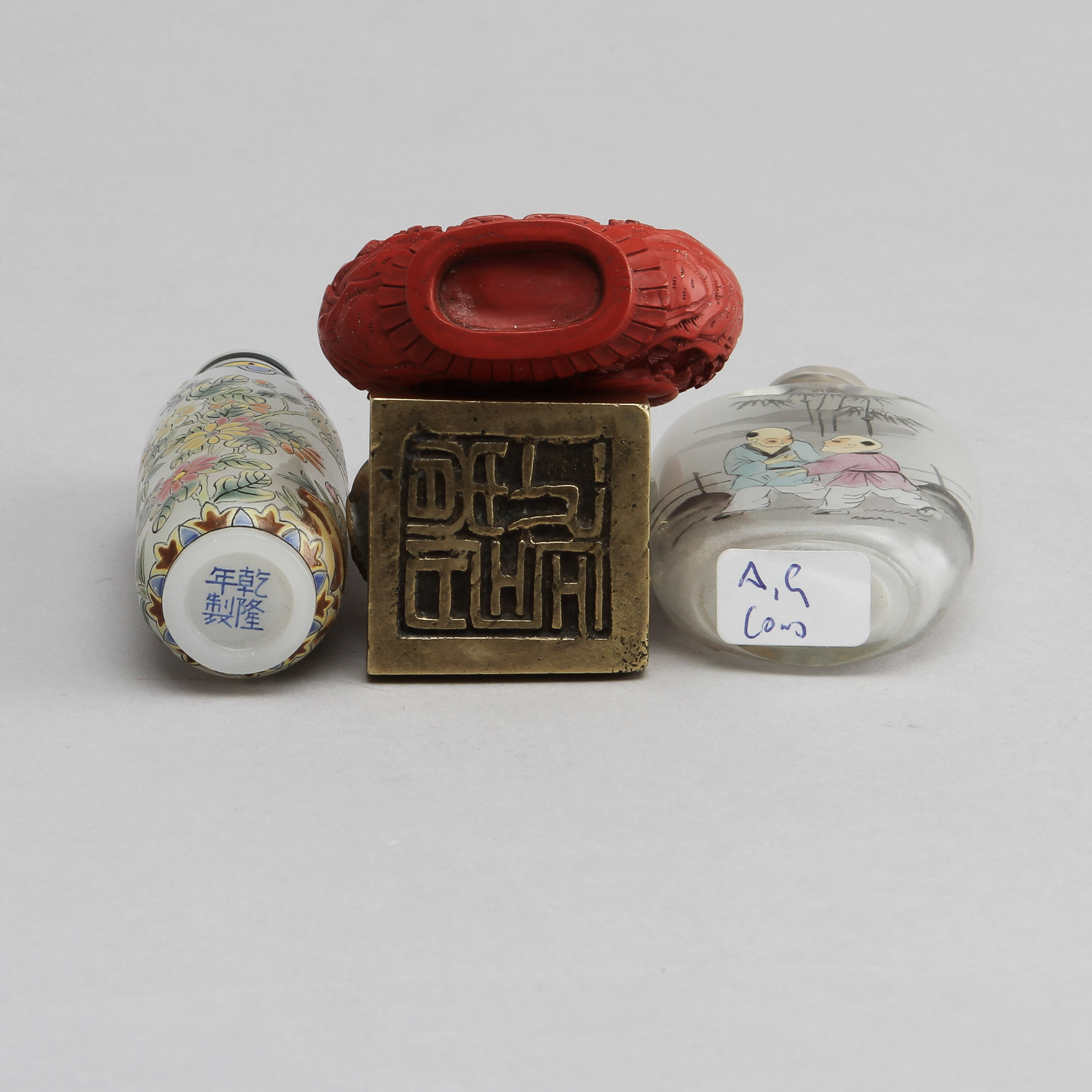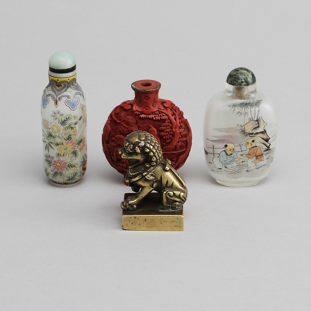 411280. SNUSFLASKOR 3 st samt STÄMPELSIGILL, Kina, 1900-tal.
