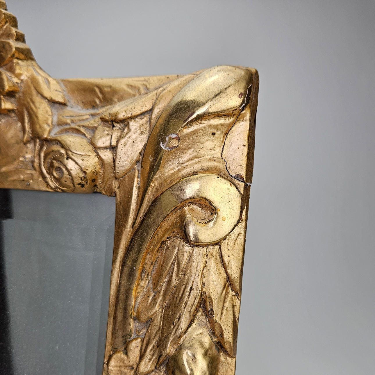 Sprickor. Renoverad och kompletterad. Mindre skador på folieringen.