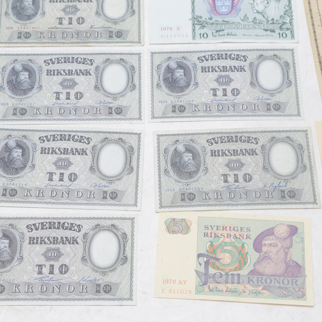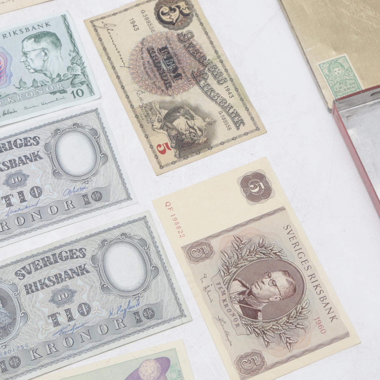 SEDLAR, 10 st, Sverige, med PLÅTASKAR, 2 st.