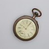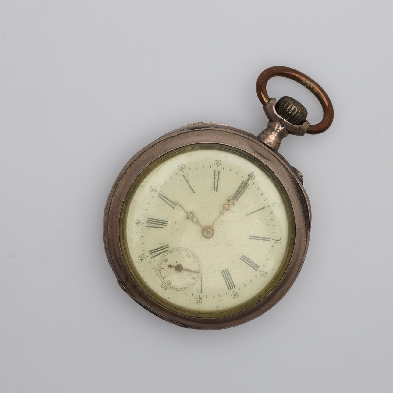 Bruksslitage, repor, missfärgat plastglas, äldre fickur rostigt urverk. Ingen funktionsgaranti lämnas.