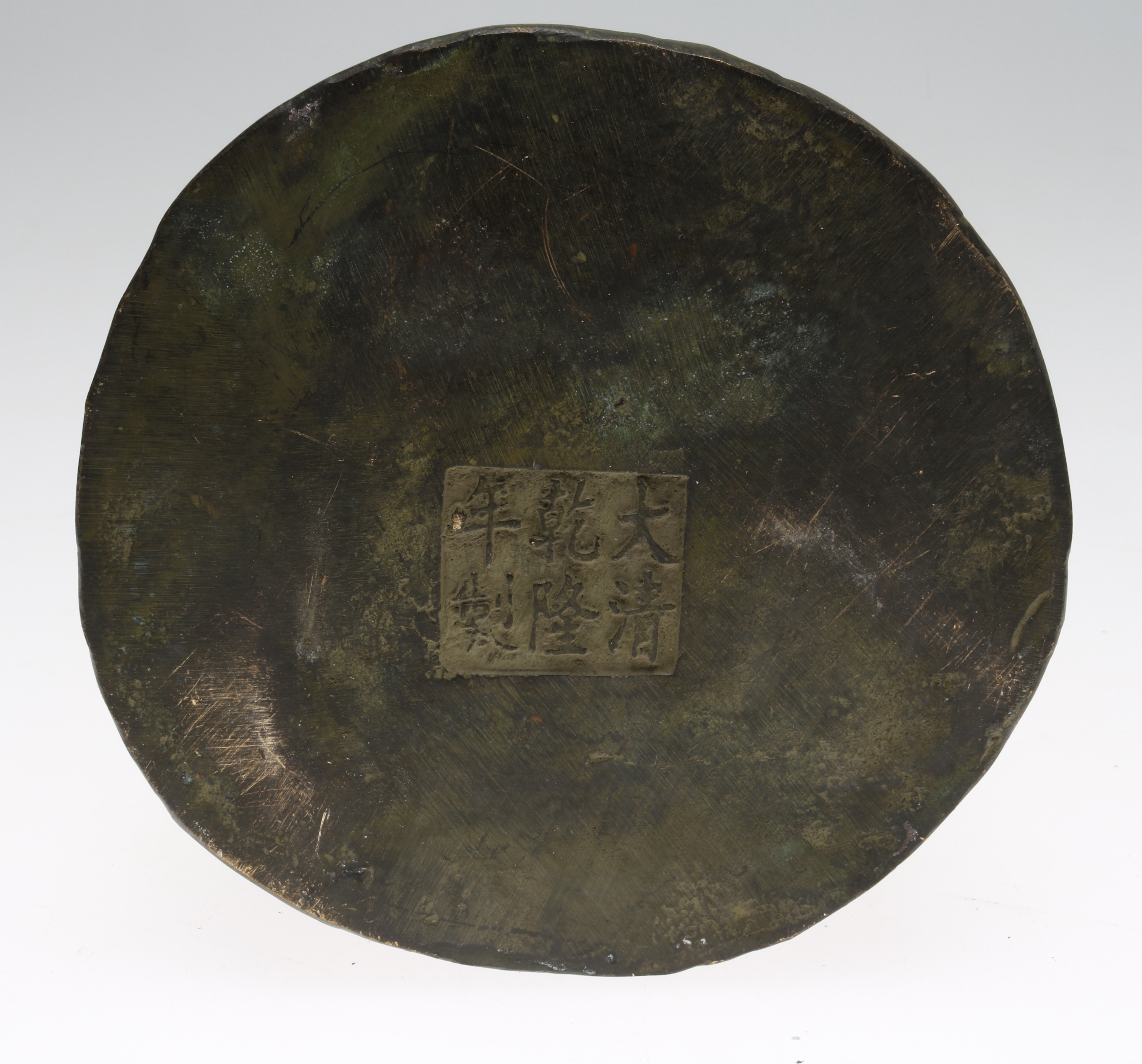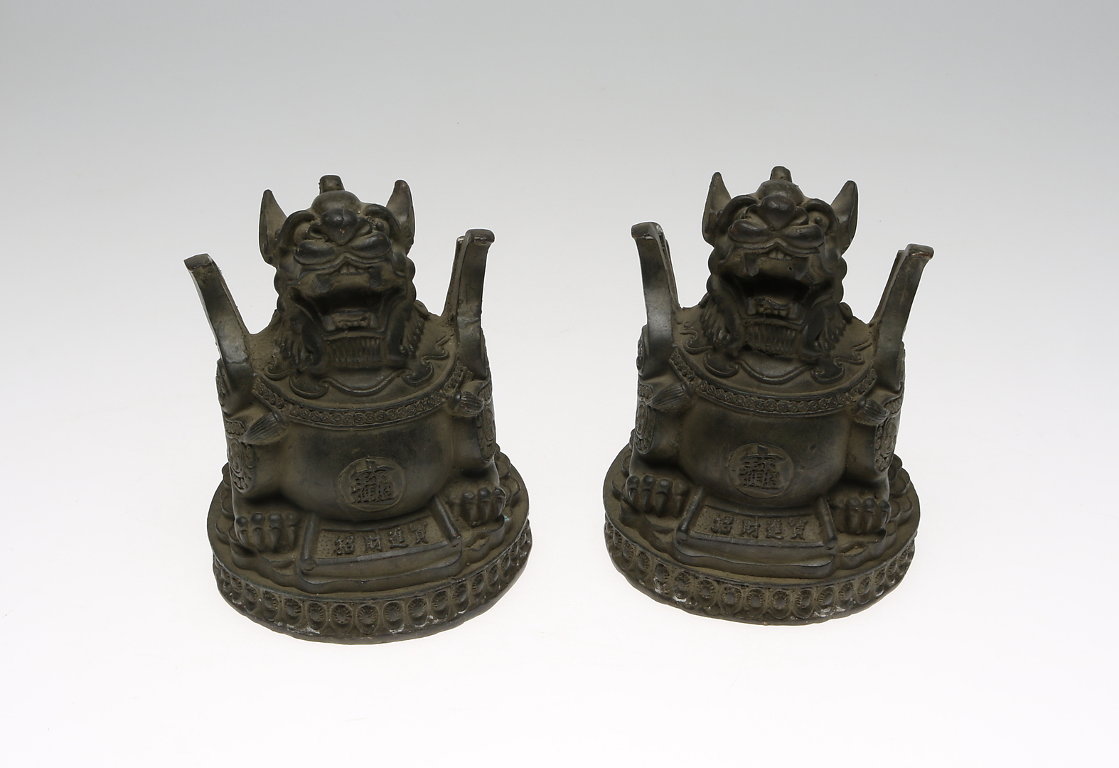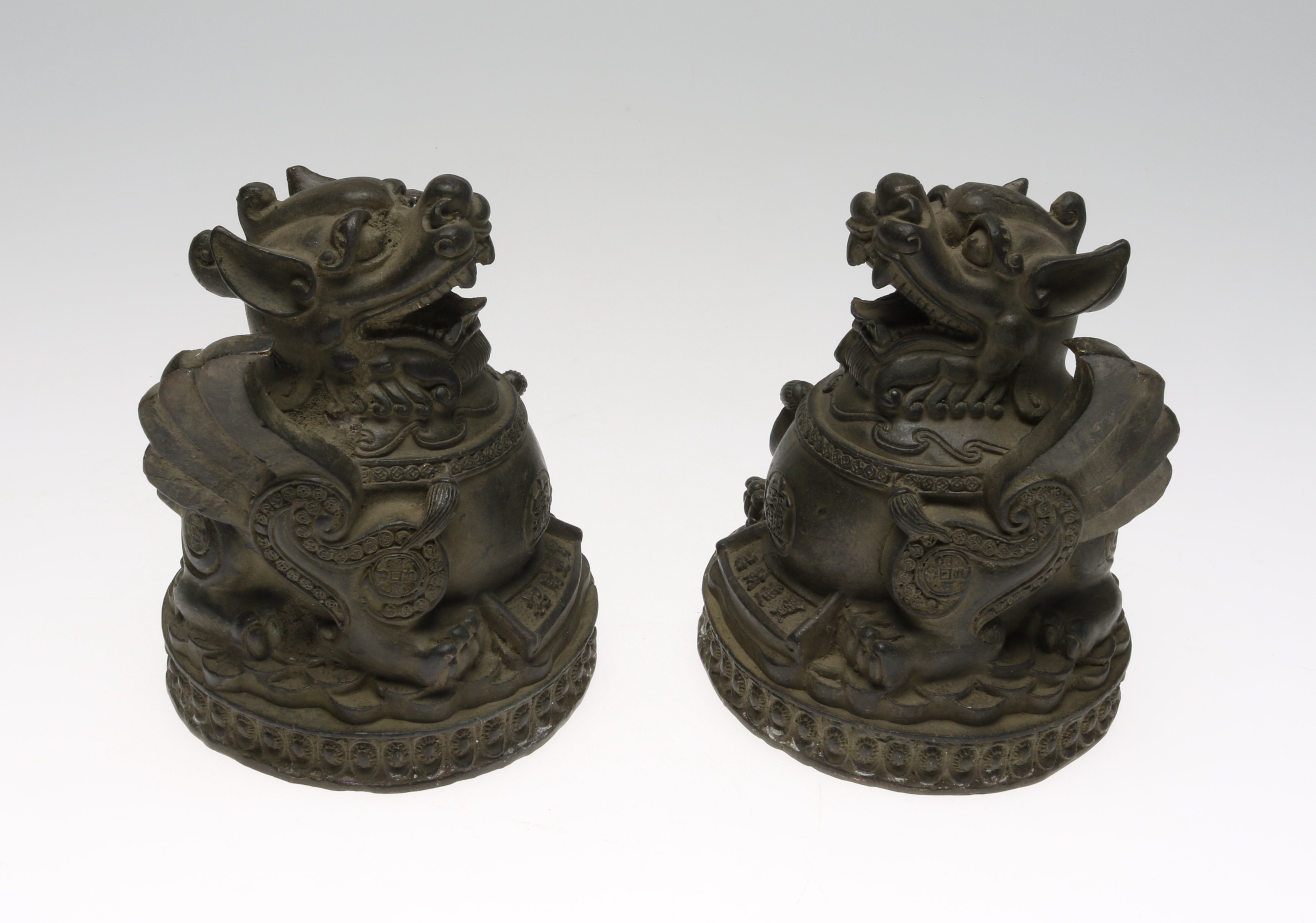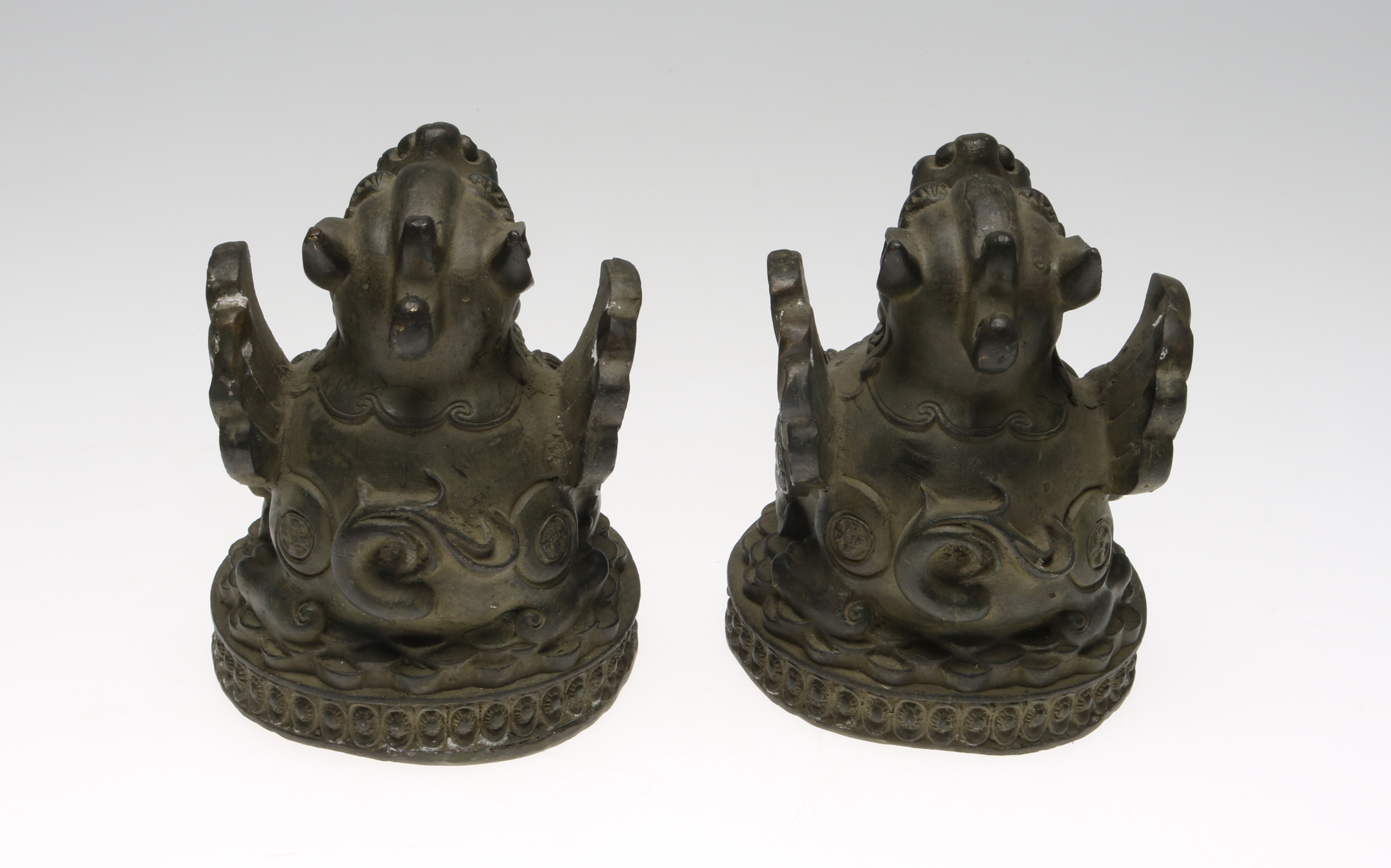412259. TEMPELLEJON, 2 st, brons, sigillstämplade, Kina.