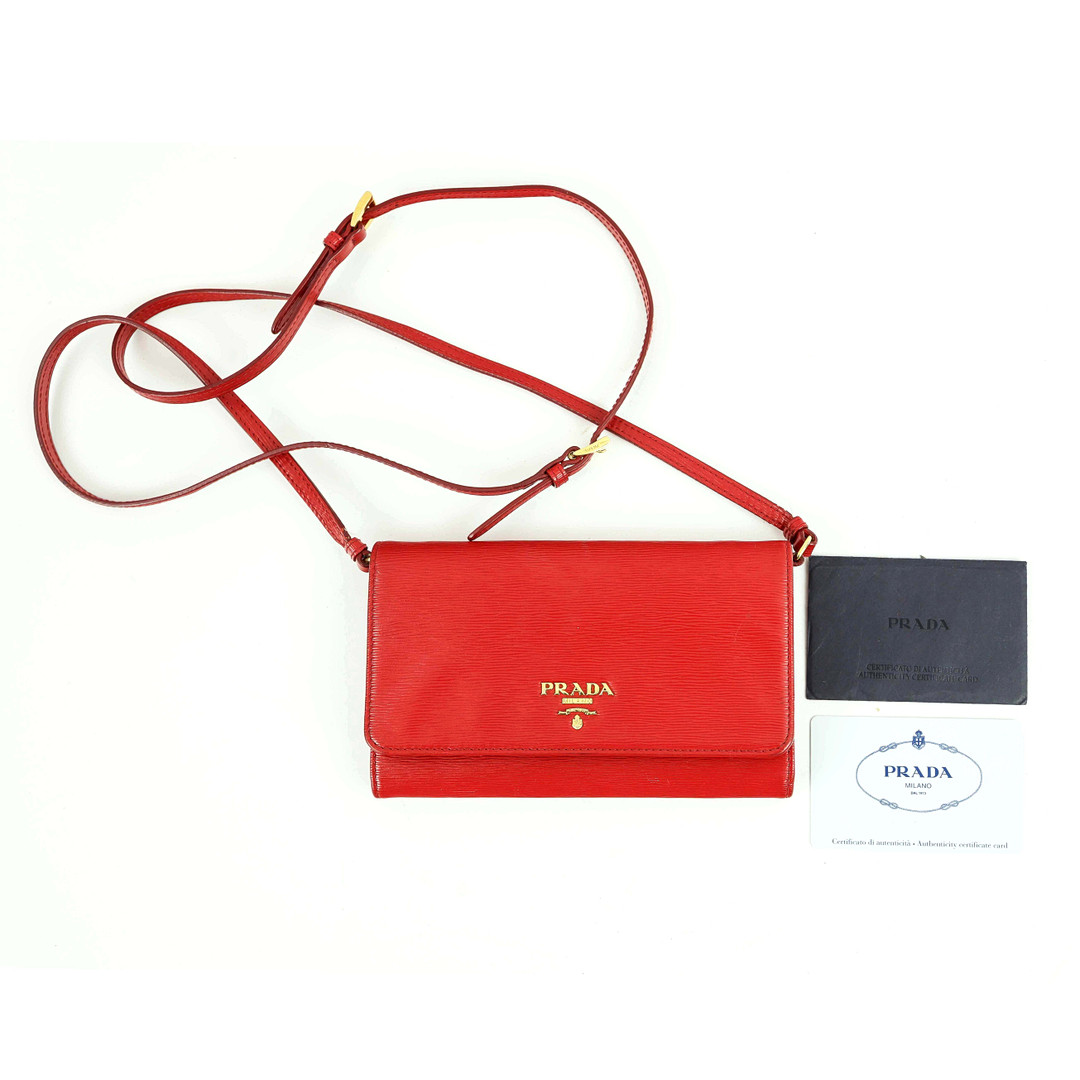 21. 4125943. PRADA CROSSBODYBAG/PLÅNBOK PÅ REM.
