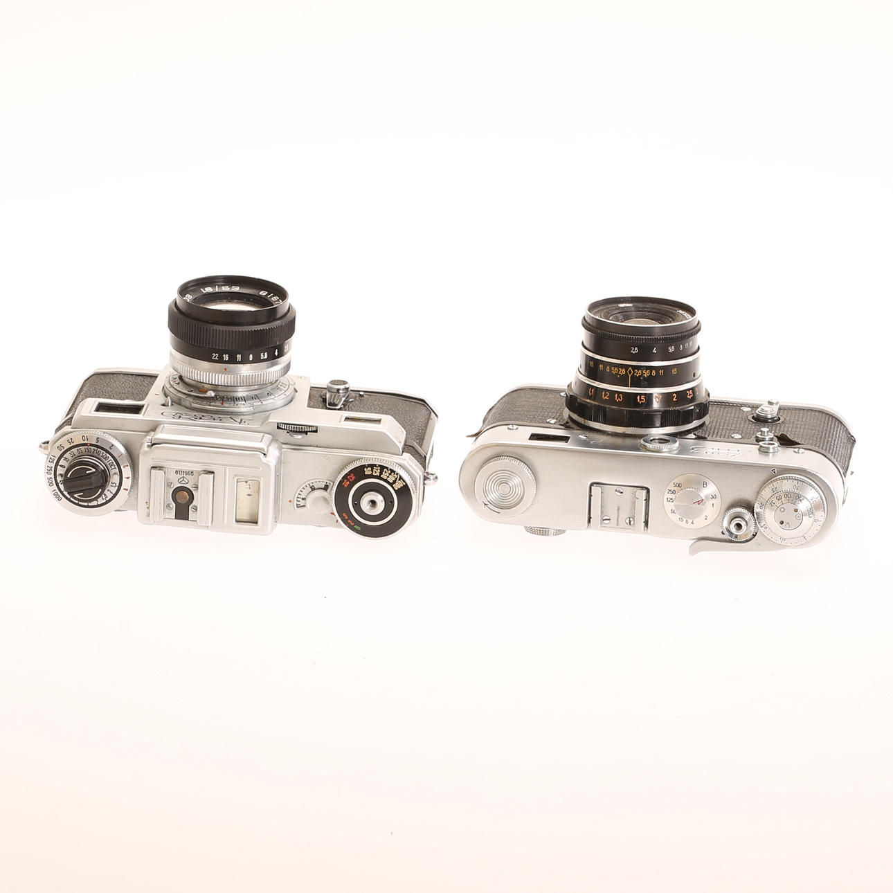 Kameror, 2 st, tillverkade i Ukraina under Sovjet-tiden.