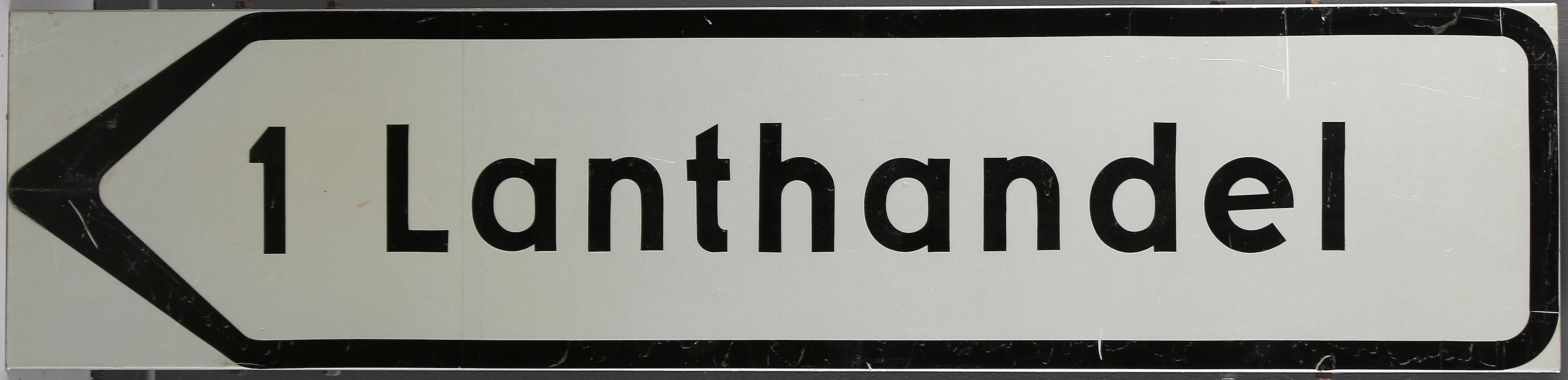 412743. VÄGSKYLT, "1 Lanthandel", 1986.