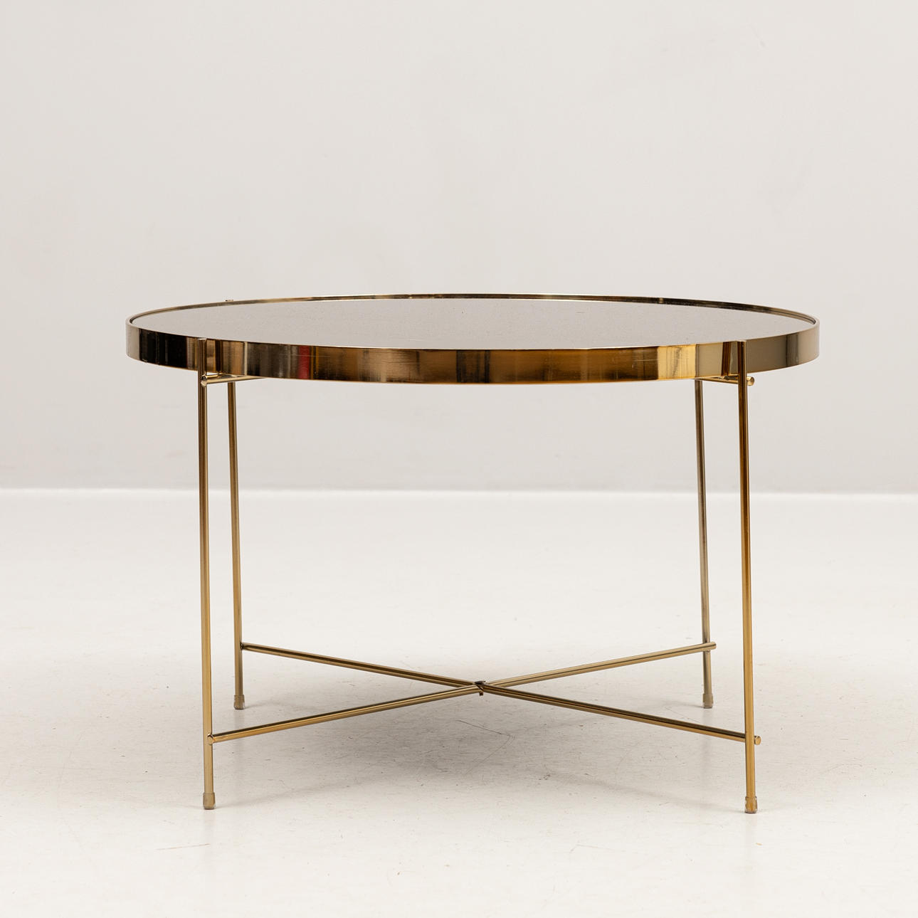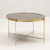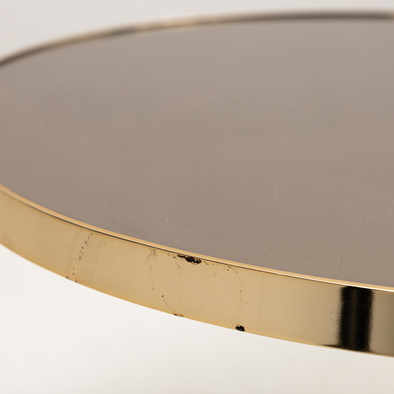 Tonat glas med gulfärgat underrede i metall, diameter ca 65 och höjd 40 cm.
