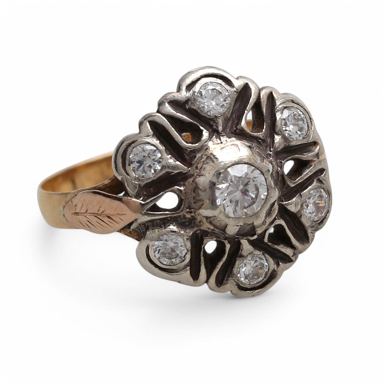 18K guld med silver och diamantvyer. Storlek 12/52. 3,6 gr.