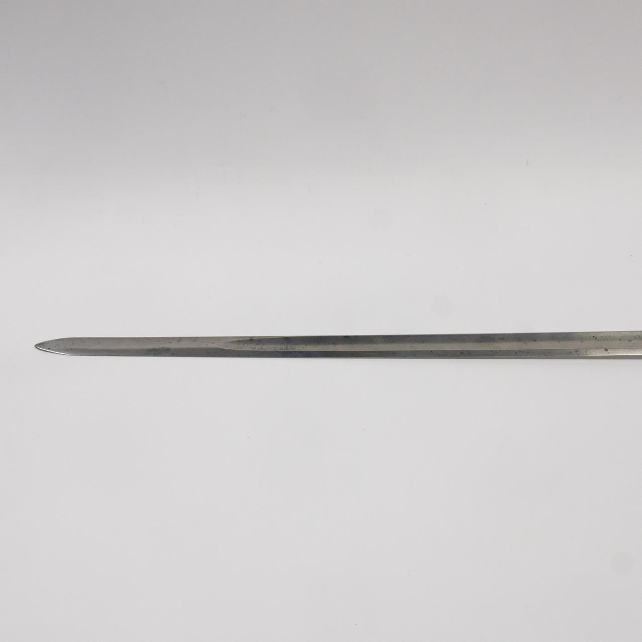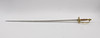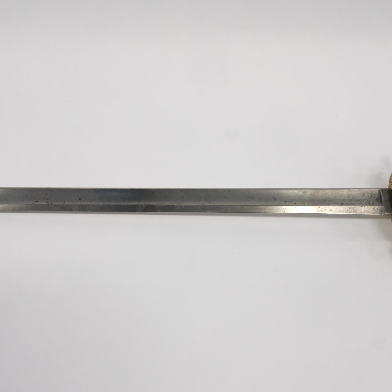 Med fäste av förgylld mässing, delvis kannelerad pommel, kopparlindad kavel och genombruten parerplåt med reliefdekor, fasetterad klinga av stål, Sverige, 1800-talets första hälft, längd ca 95 cm.