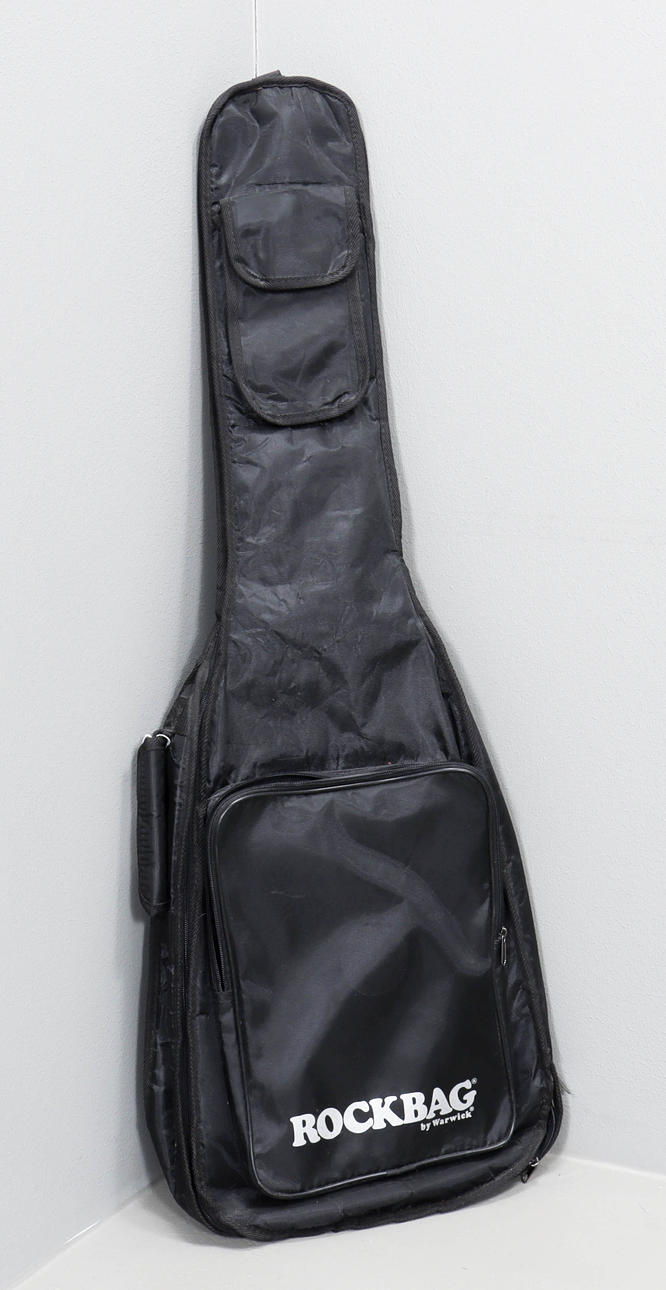 Instrumentkabel samt plektrum och bok medföljer.