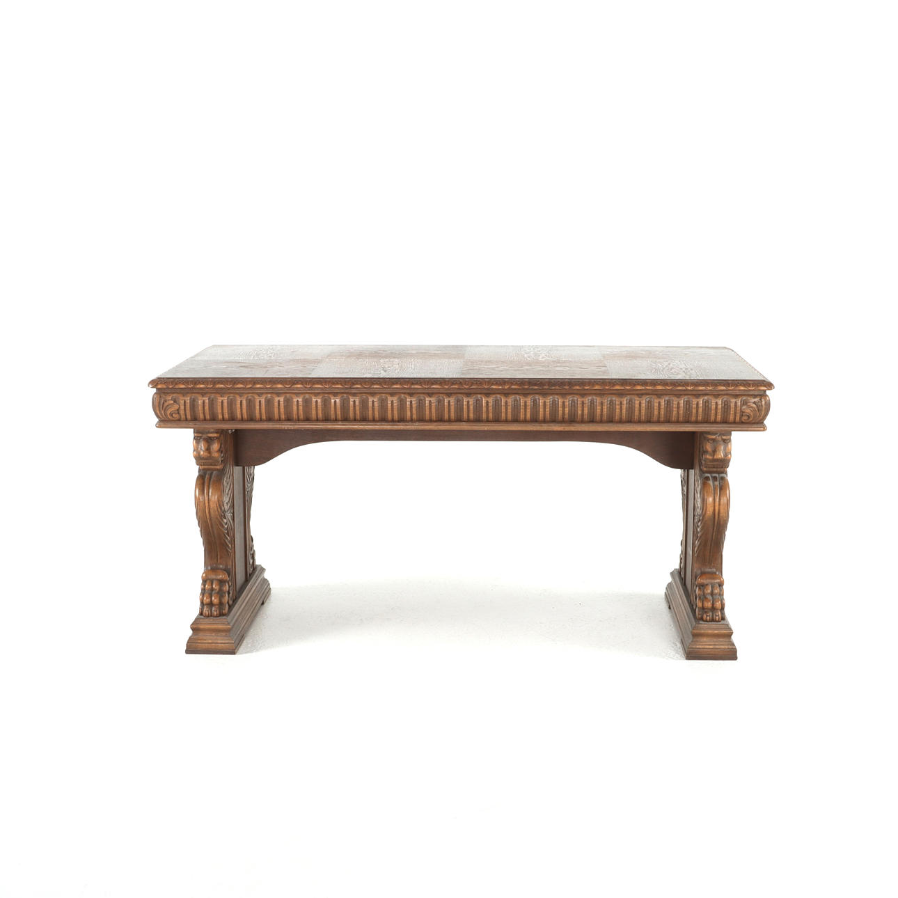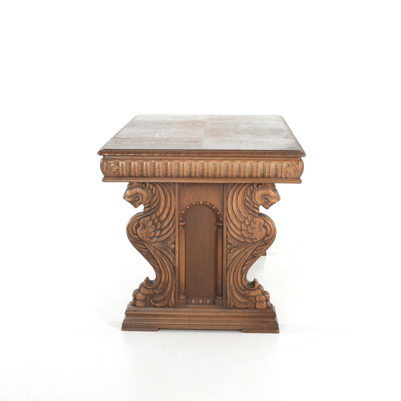 Skrivbord, skulpterad ek, Sverige. Snidade detaljer med sfinx på benställning. 3 lådor i sarg.