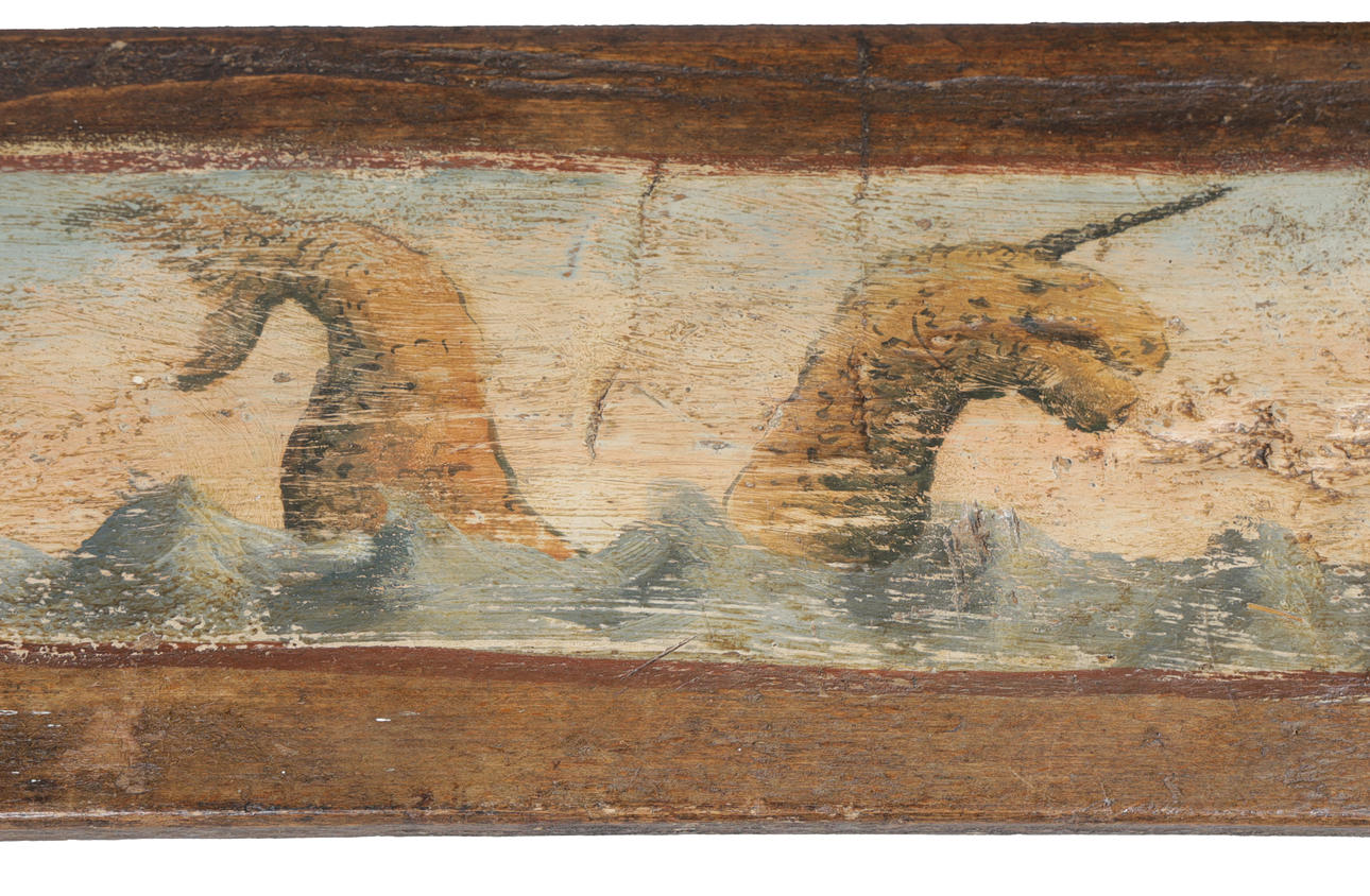Med en något krökt axel målade bladet med en mytisk varelse, 107 cm lång.