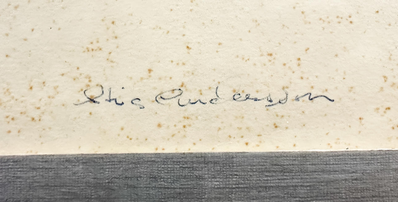 Signerad i vänstra hörnet delvis täckt av passpartout. Signerad Otis Andersson i högra hörnet.