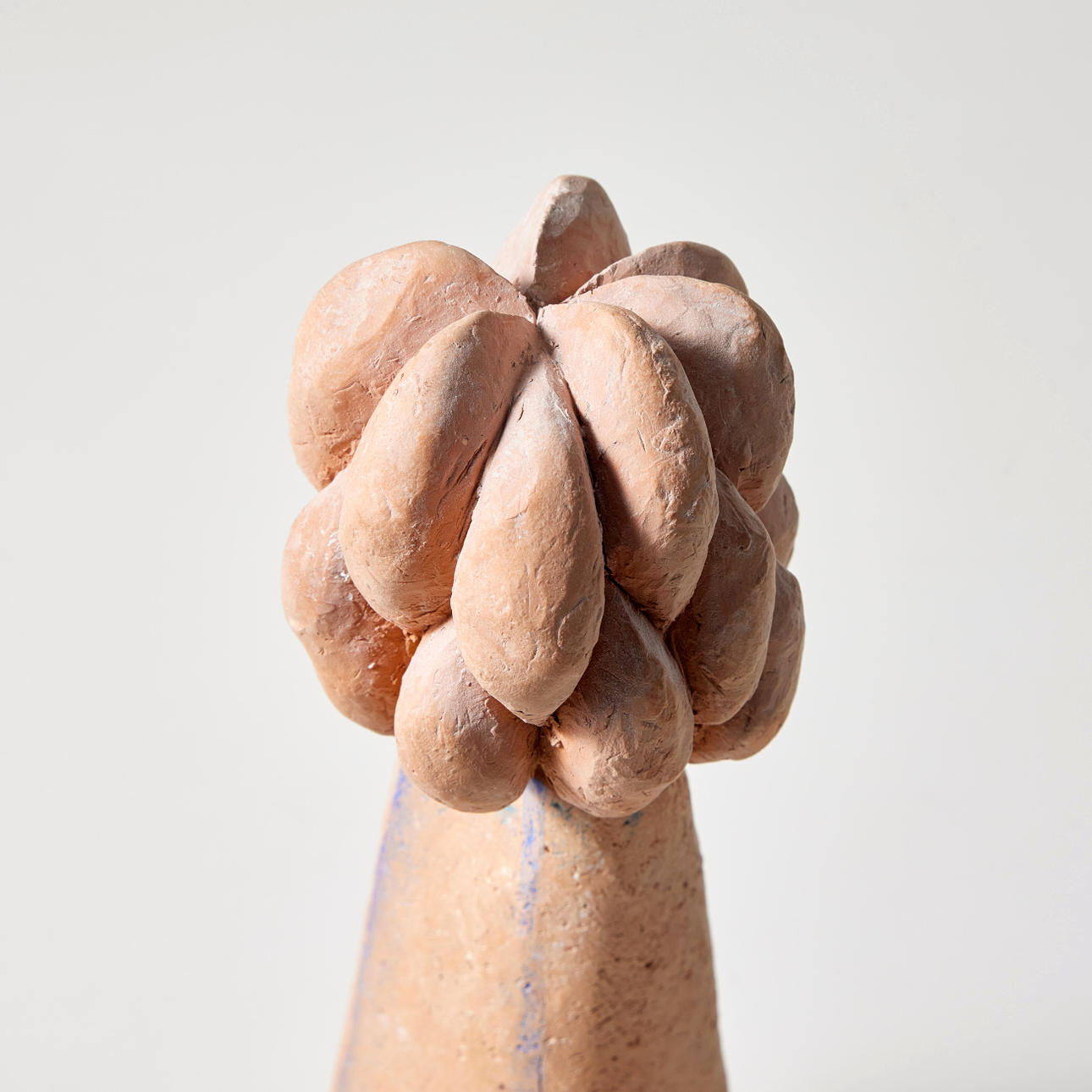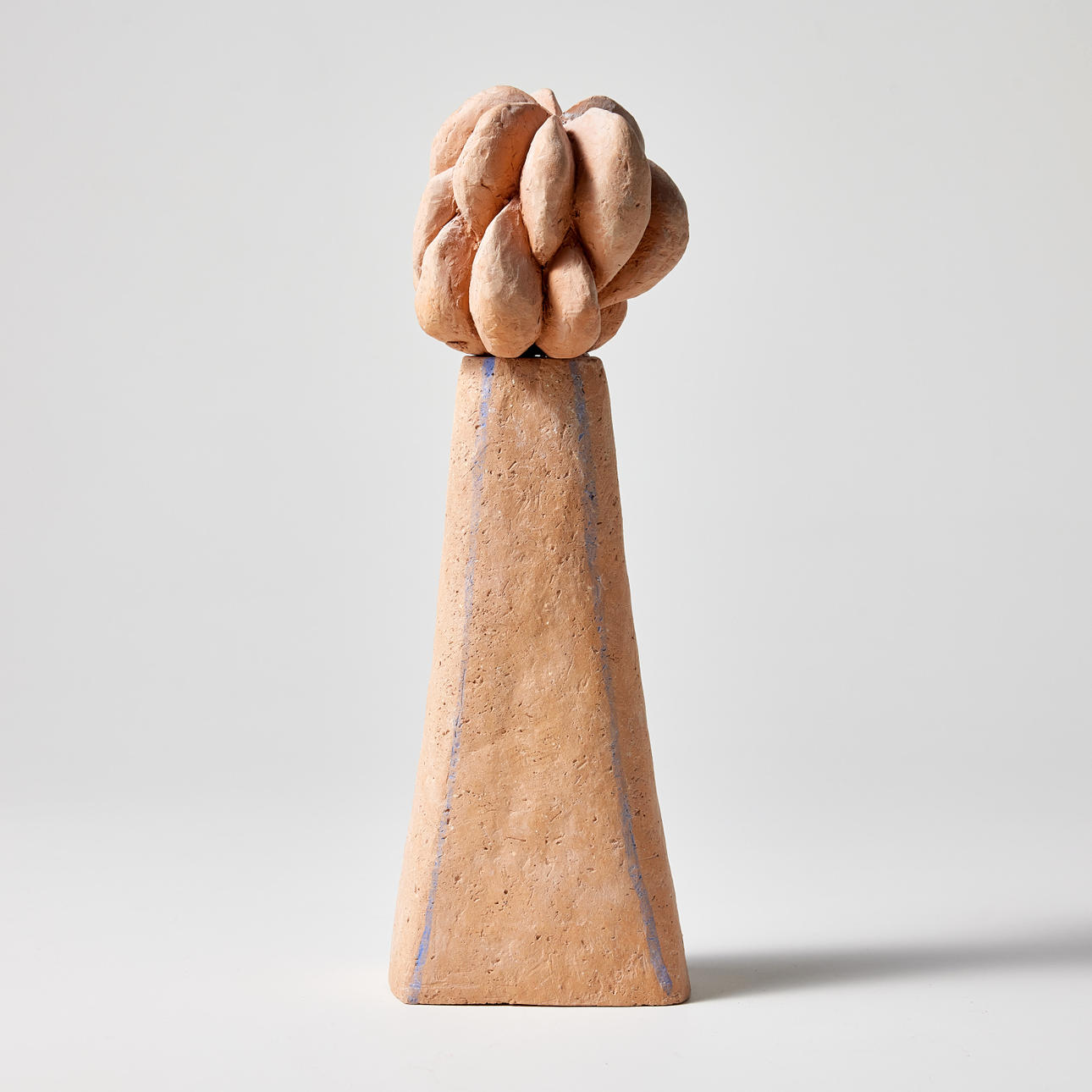 Terrakotta, två delar fästa på varandra, höjd 24 cm, bredd 8 cm, djup 6 cm.