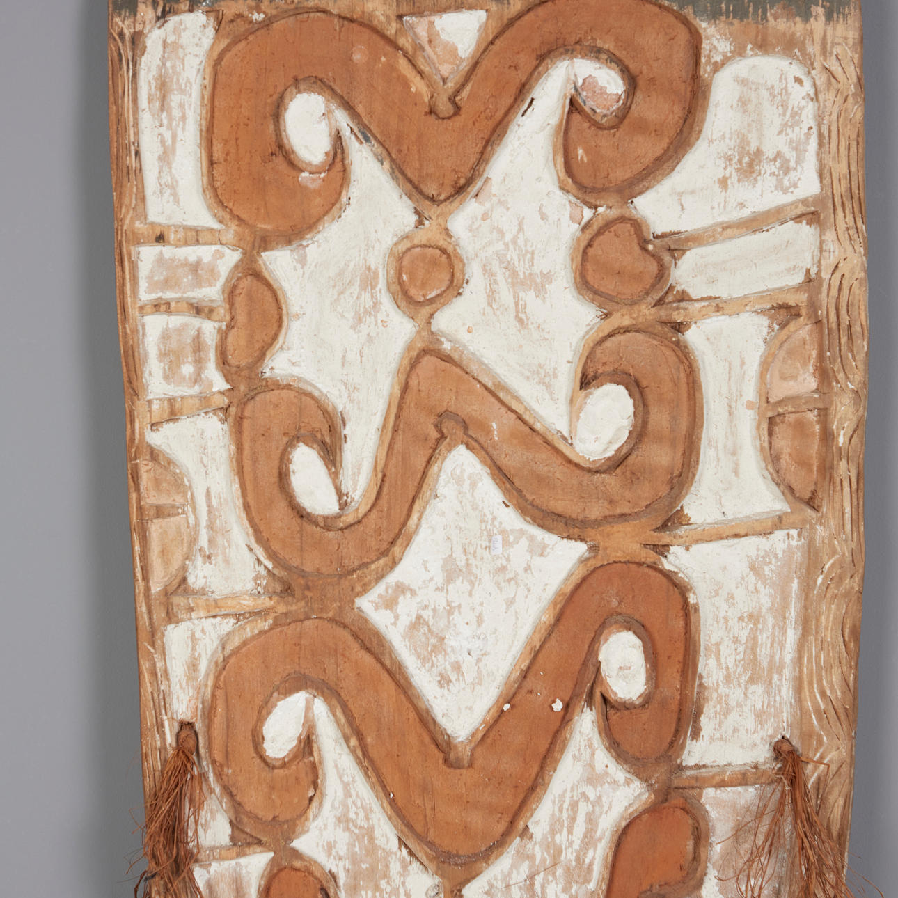 Träskylt med sniderier målade med vita pigment, H.188cm, B46cm, D.10cm.