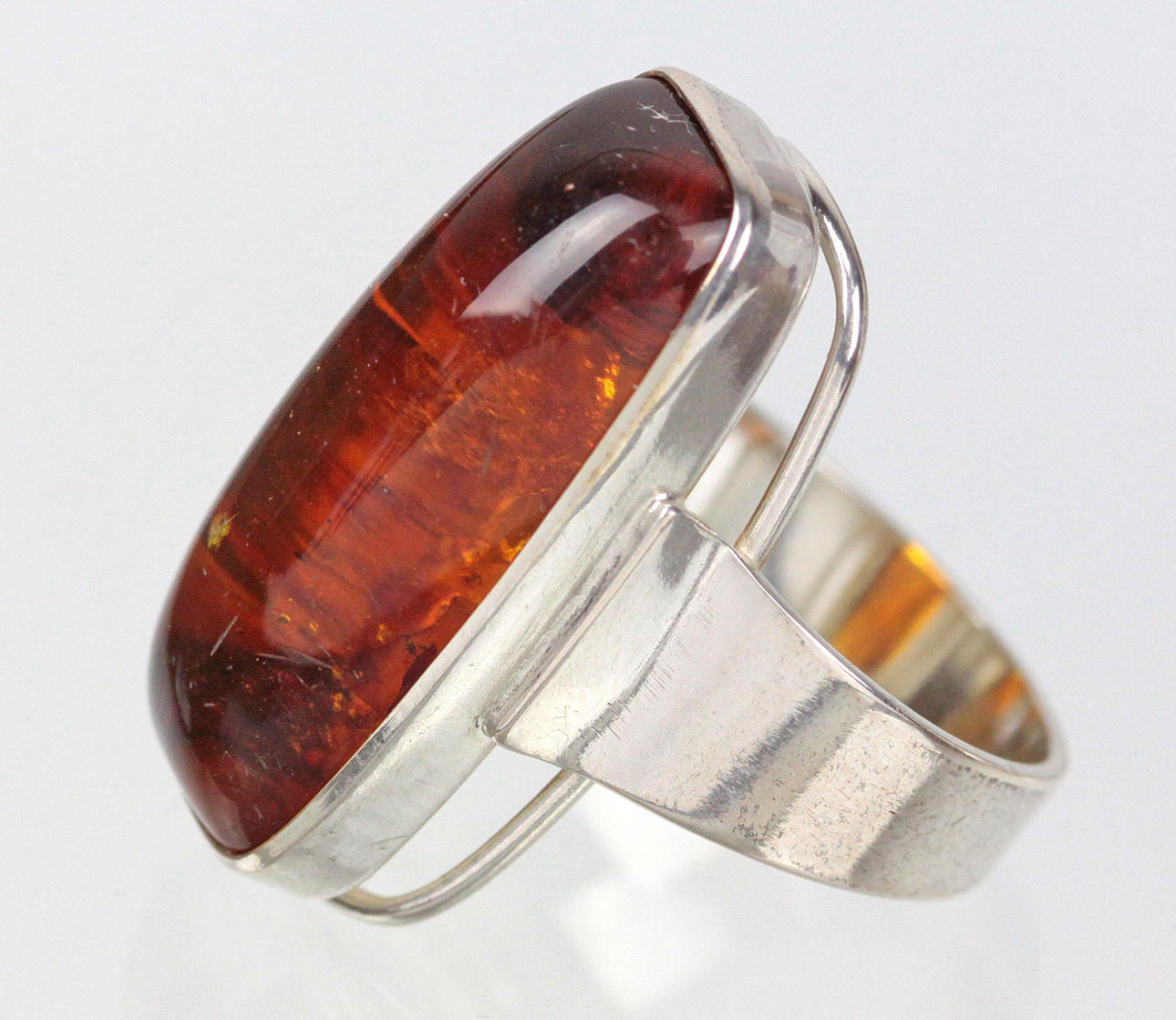 414475. Bärnstensring, silver 835, Peter Brommold.