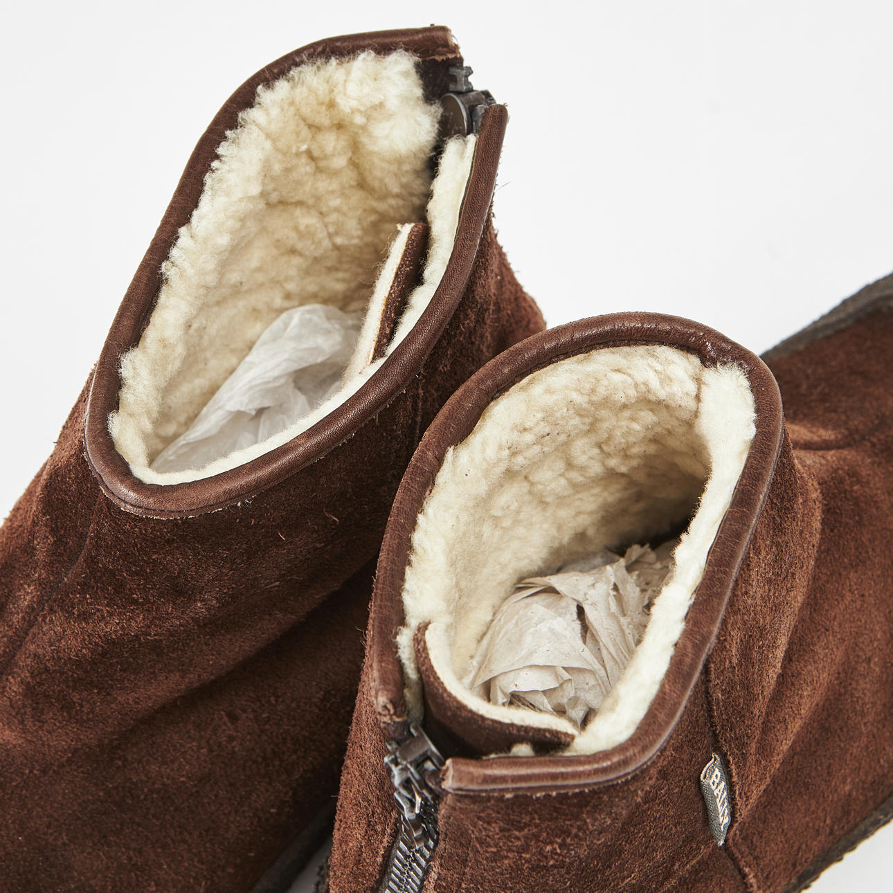 Kängor i brun mocka, fodrad insida, sulor i gummi, storlek 38, mått ca 16, 28x16cm.