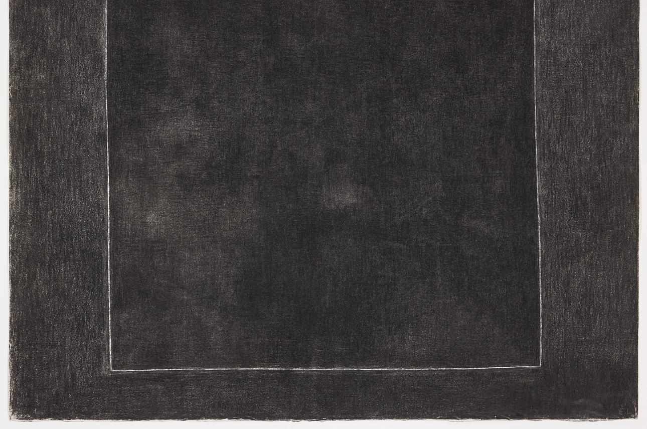 Kol på papper, 106 x 90 cm, rammått 119 x 102 cm. Signerad EL.