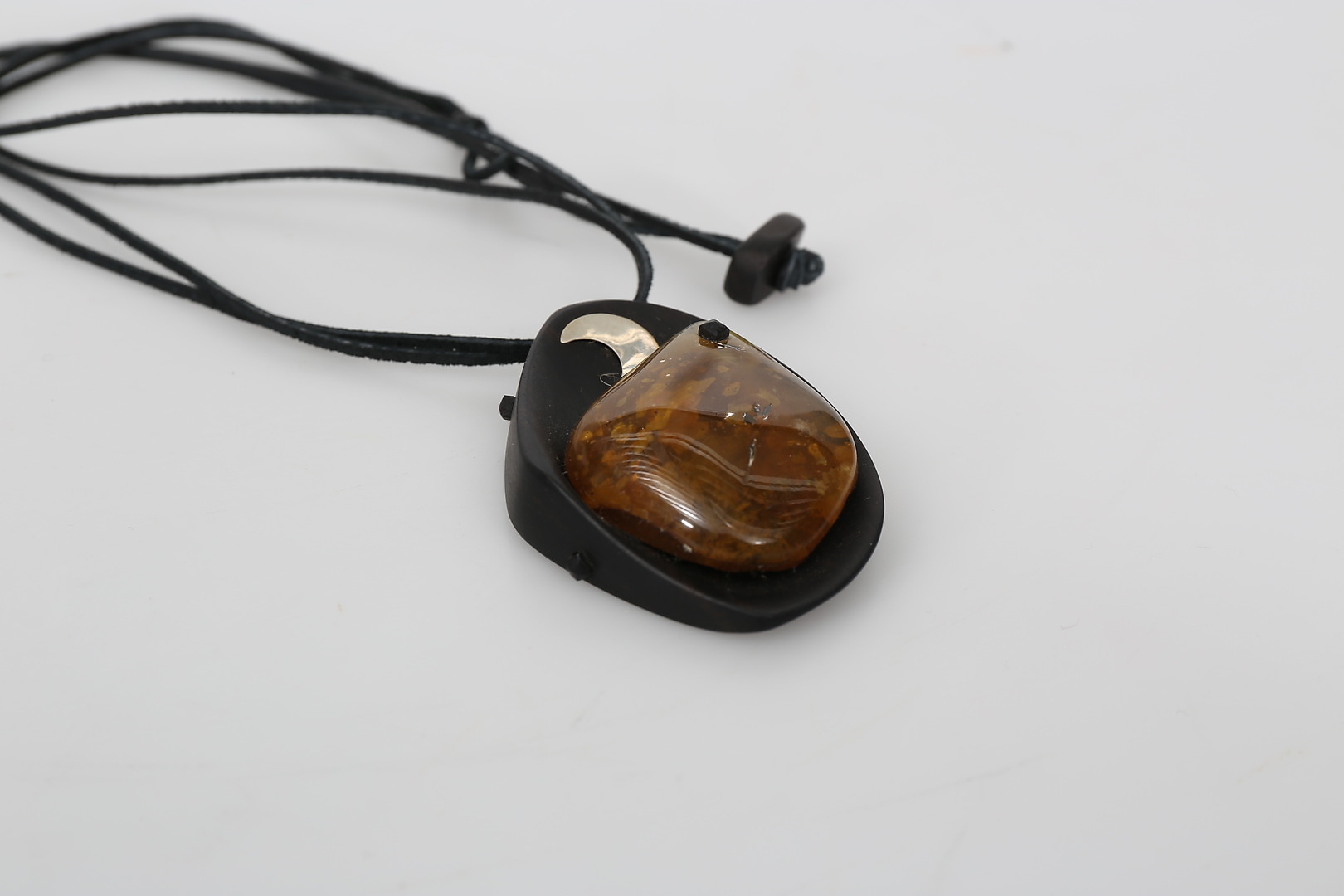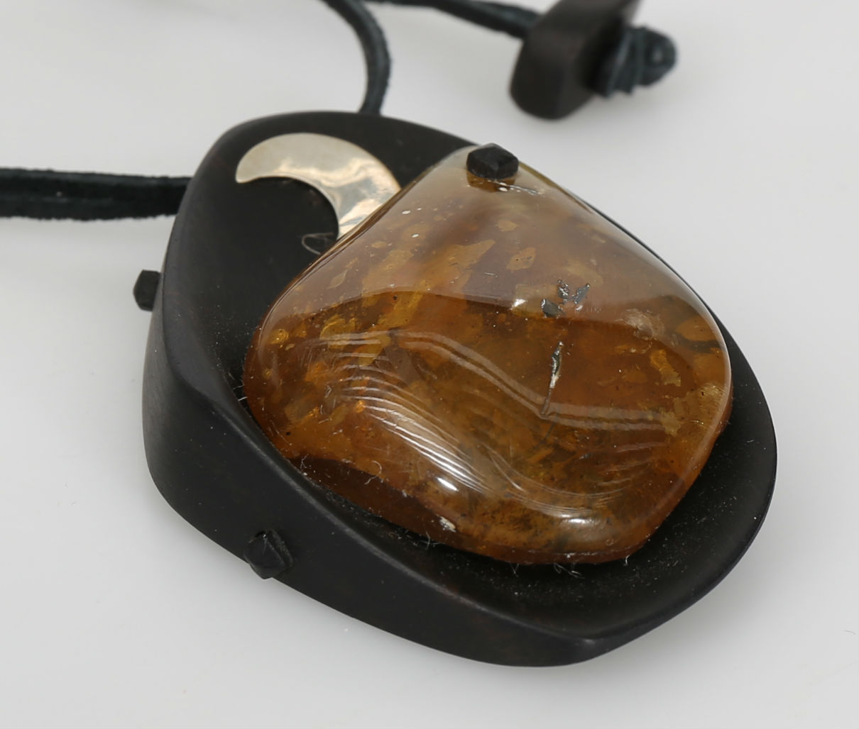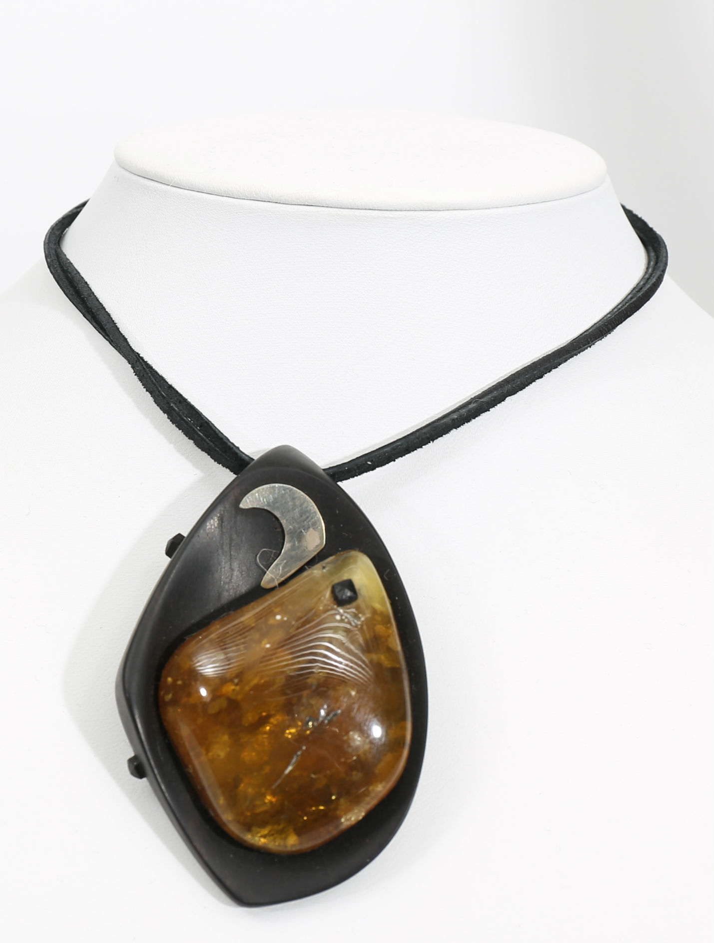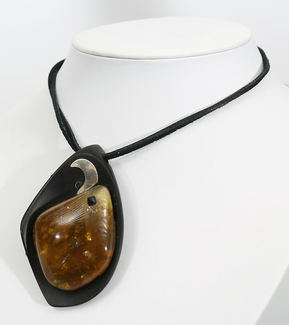 414871. COLLIER, trä, silver och bärnsten, 1900-2000-tal.