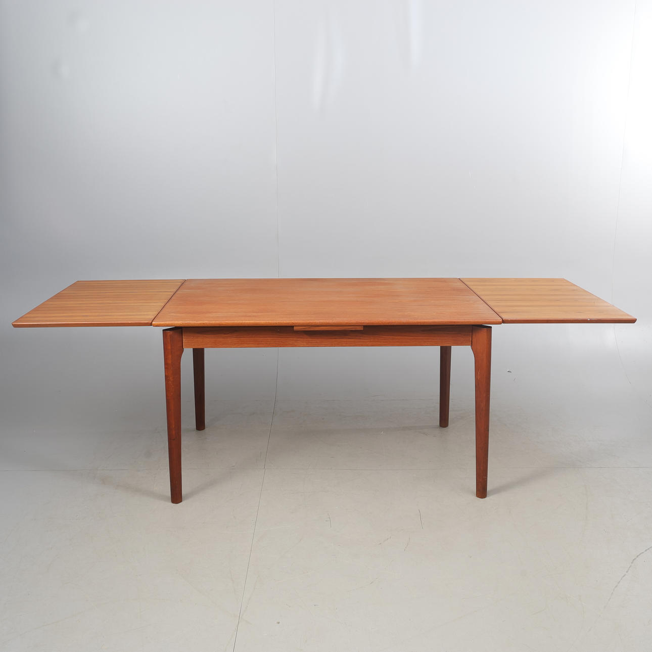 Ca 124 x 80 cm, 72 cm hög Utdragbart teakbord/matbord solid teakkonstruktion, utdragbart på båda sidor.
