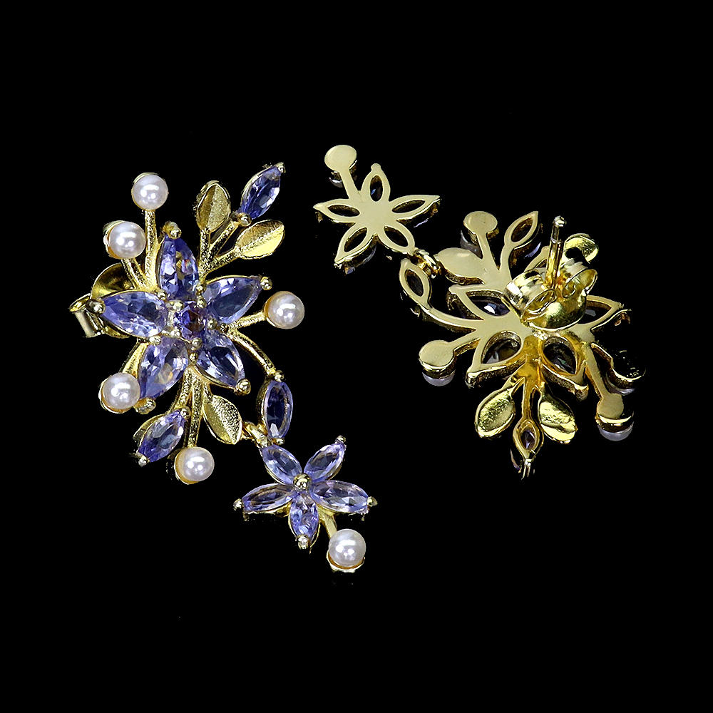 4150714. ÖRHÄNGEN I TANZANIT OCH PÄRLSILVER.