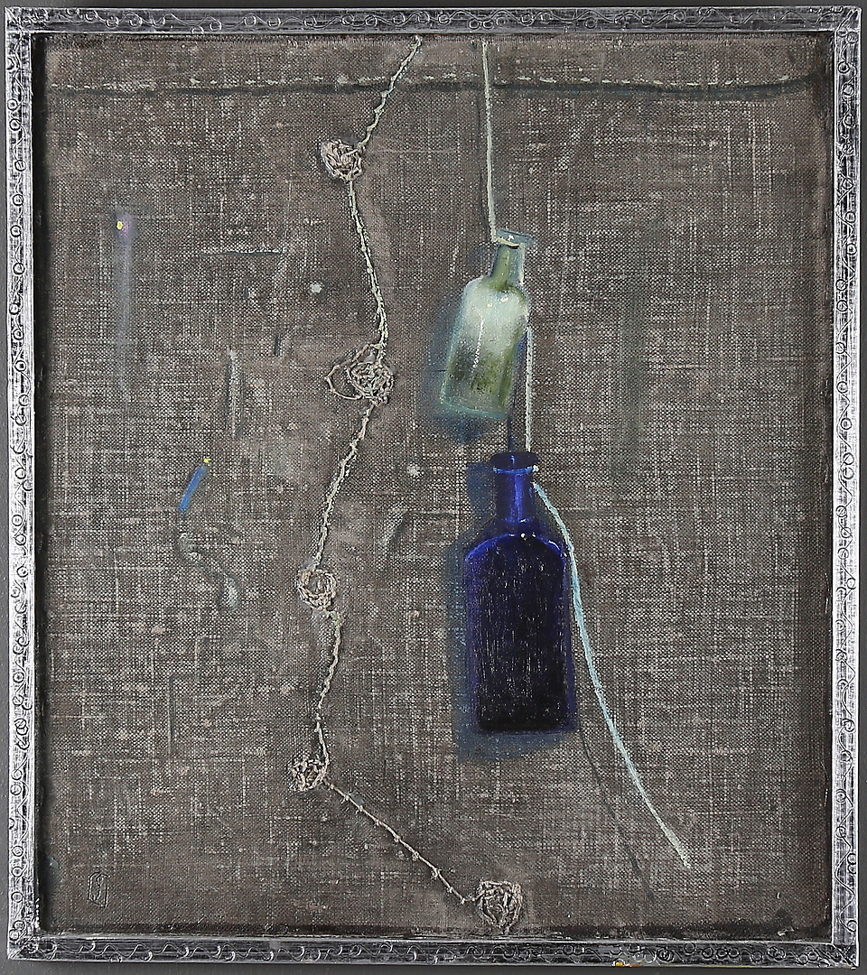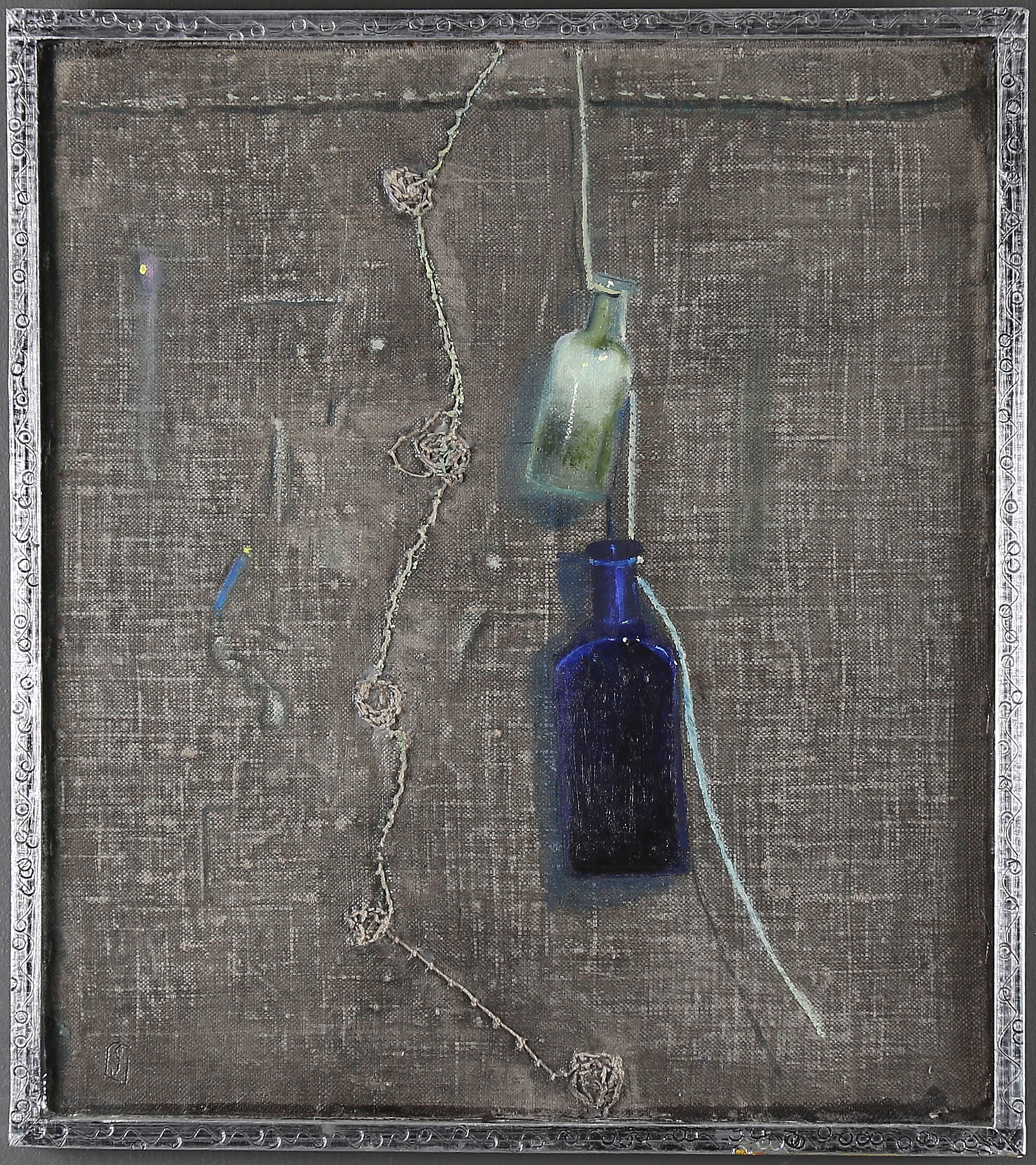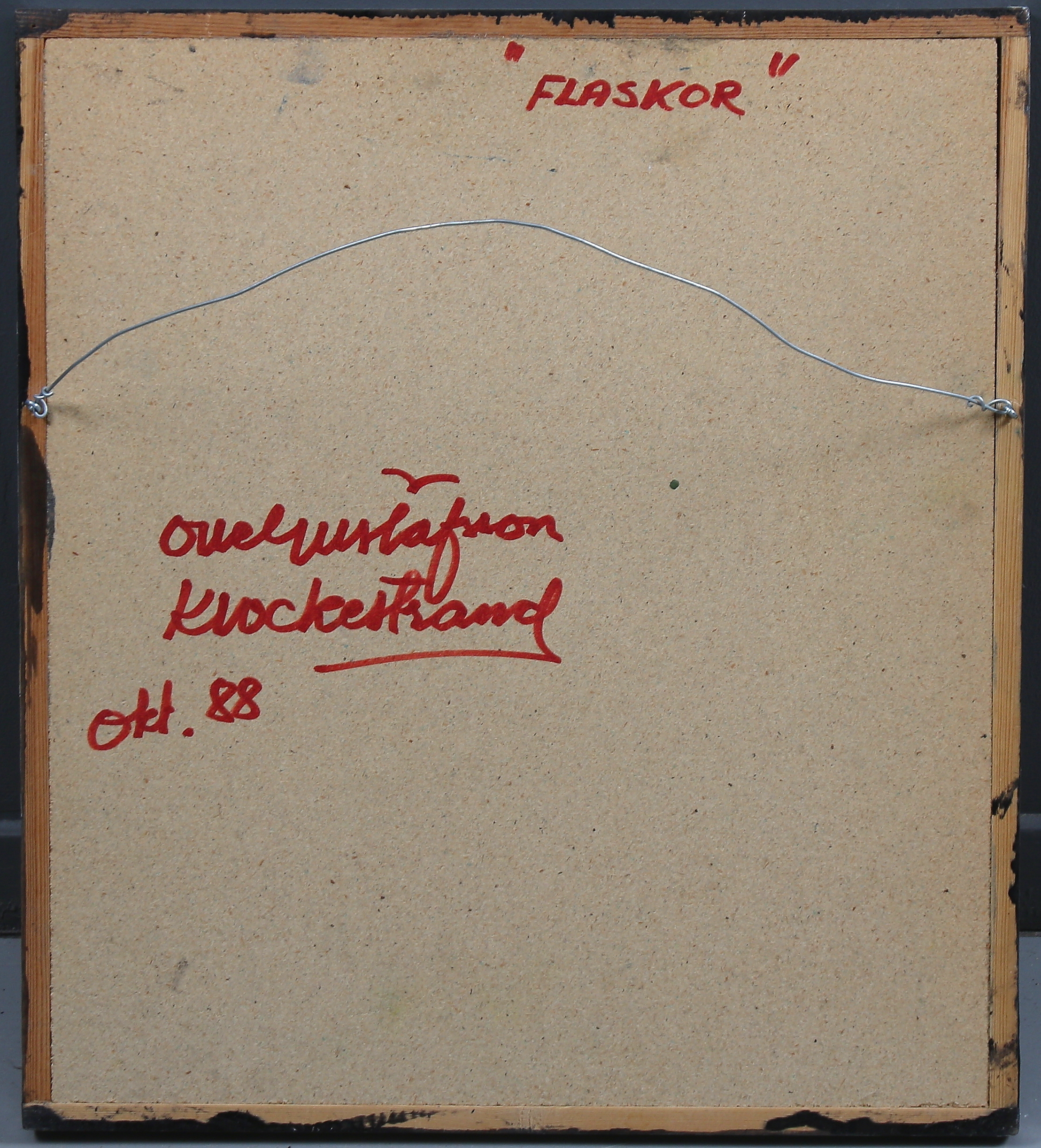 415107. OLLE GUSTAFSSON. "Flaskor", blandteknik, signerad.