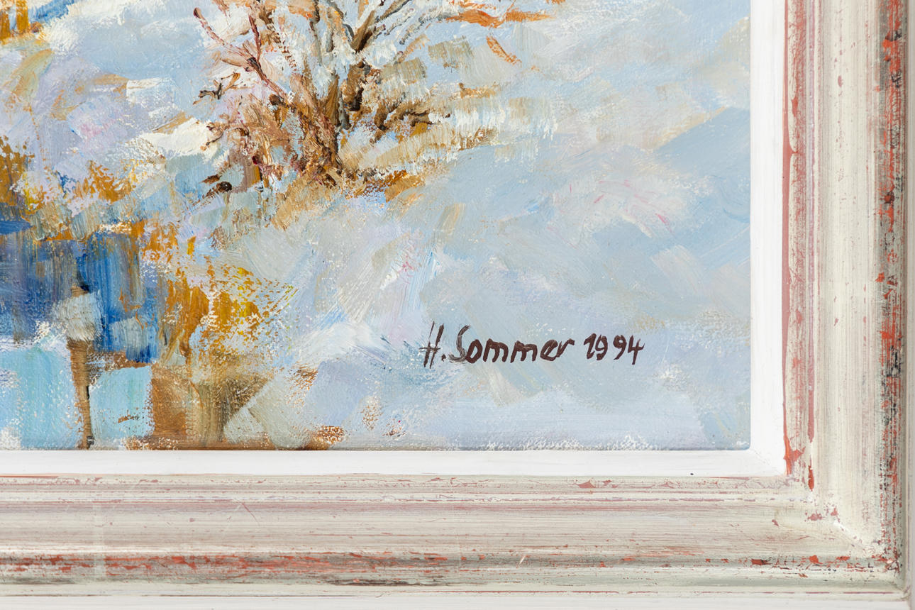 Harald Sommer (1930-2010), Vinter i Hintertaunus, olja på duk, 1994, signerad och daterad längst ner till höger, konstnärens etikett på ramen, signerad, titeln och med verks nummer ”631", ca. 48 x 56 cm, med ram ca. 65,5 x 73,5 cm.