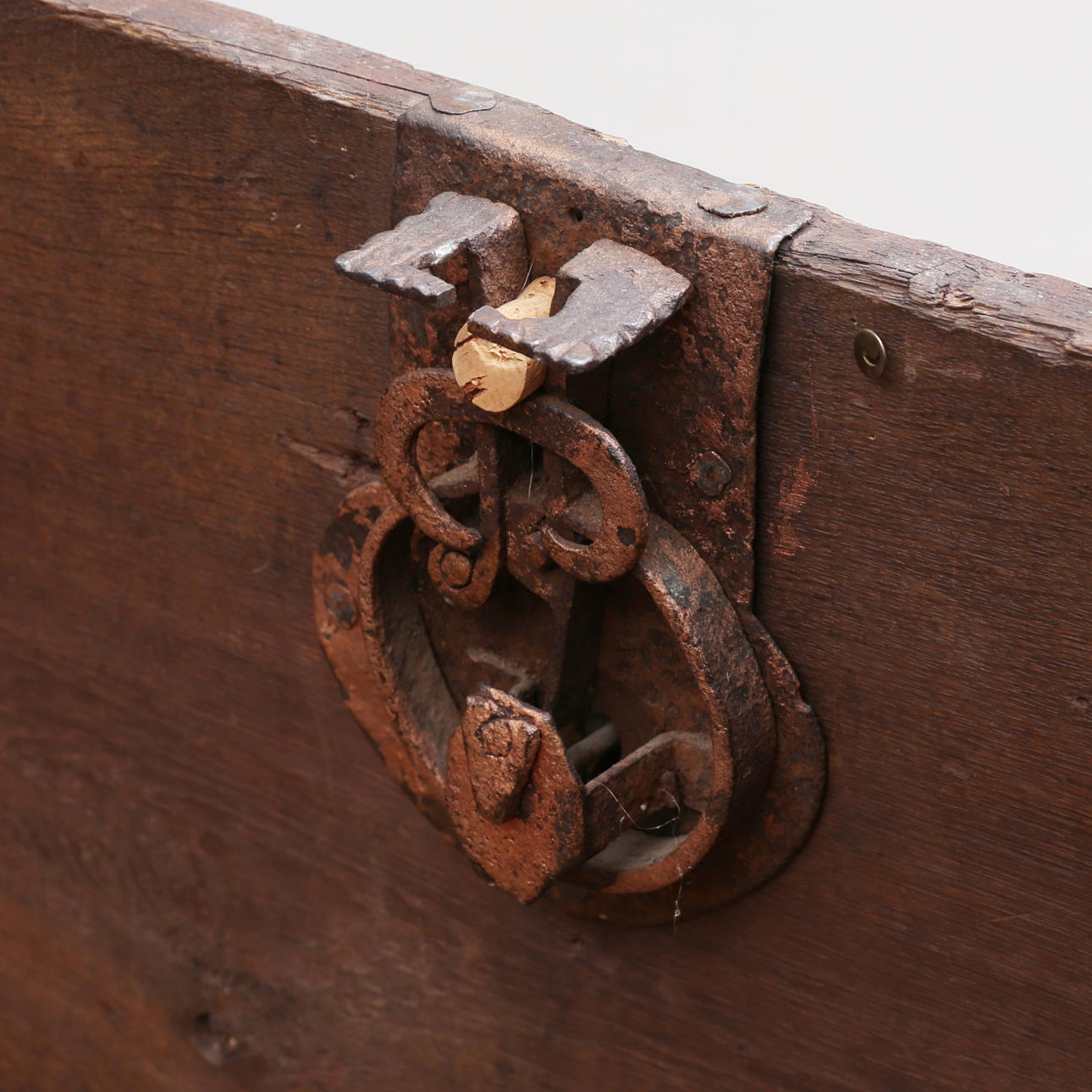 Åldersslitage Fläckar, märken Lagning, lock Ställvis murket trä Nyare mindre innerlock Lås defekt.