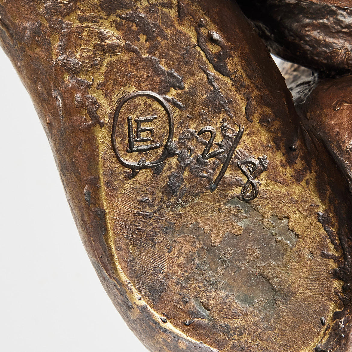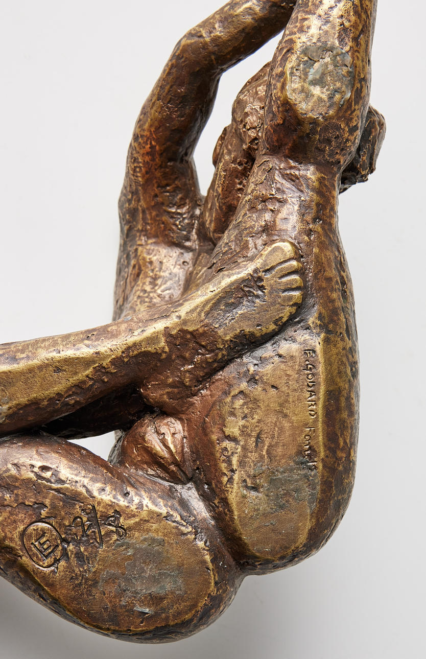 Guldpatinerad brons, 9 x 25 x 19 cm, monogramsignerad LE, numrerad 2/8, gjutarstämpel E. Godard Fond.