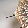 Tyg släppt från en pinne, blekt tyg, saknar "flärp" runt paraply, bruksslitage.