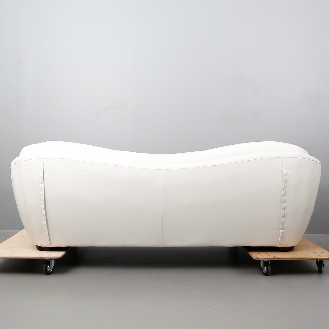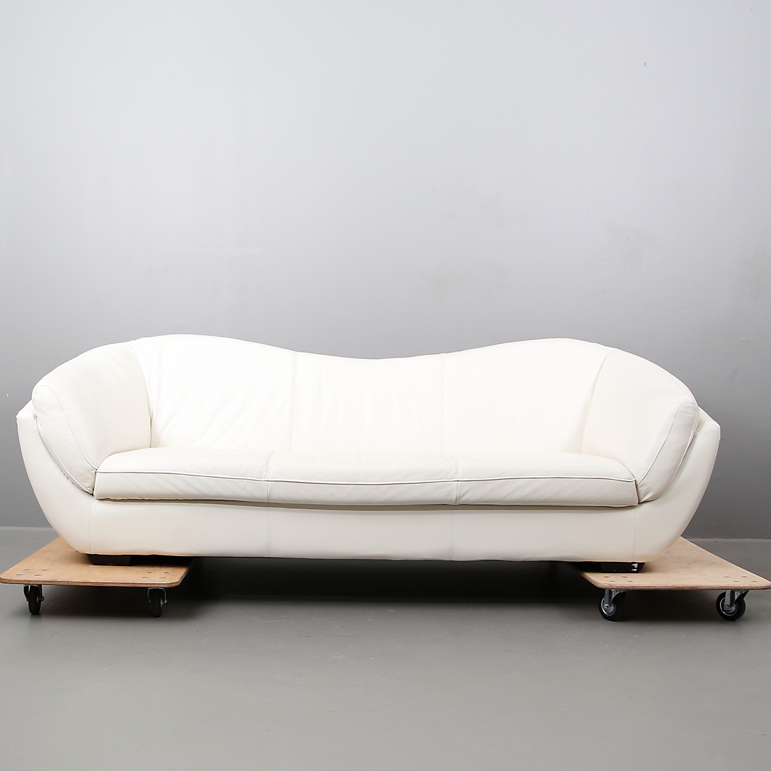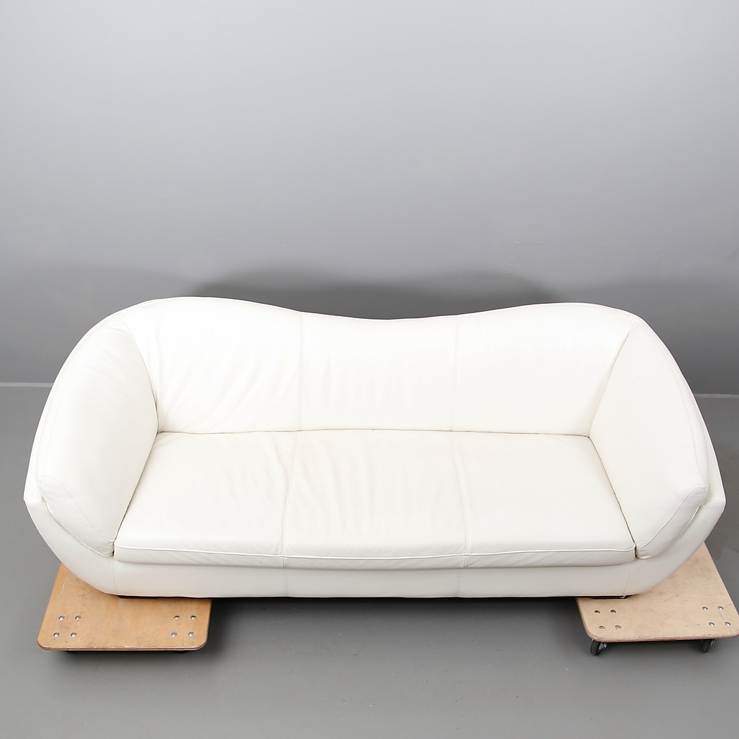415822. SOFFA i vitt läder, tre-sitsmodell.
