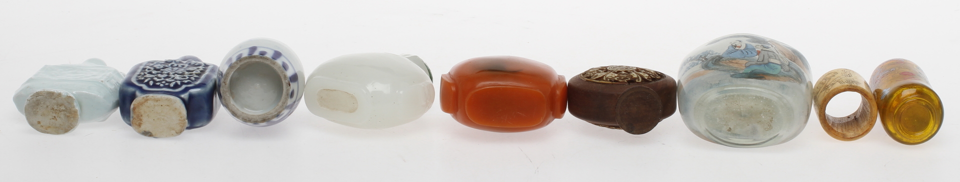 41607. SNUSFLASKOR/FLAKONGER, 8 st, RING, glas & porslin, Kina.