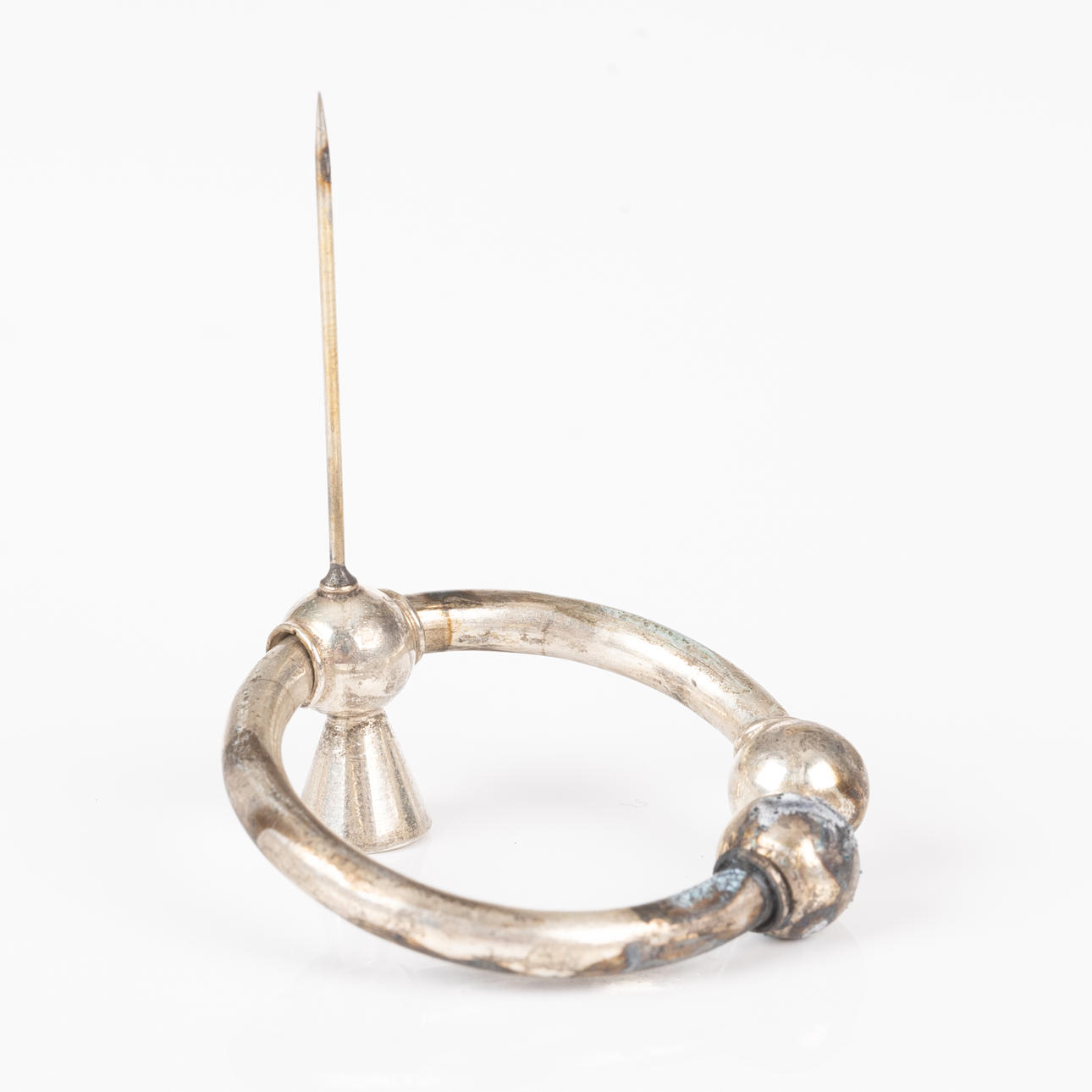 Brosch i silver tillverkarstämplad JP (Petterssons eftr. Juvelerar AB), ortstämplad Stockholm, samt otydlig datumstämpel. Mått: Ø 4 cm Vikt 11,5 g.