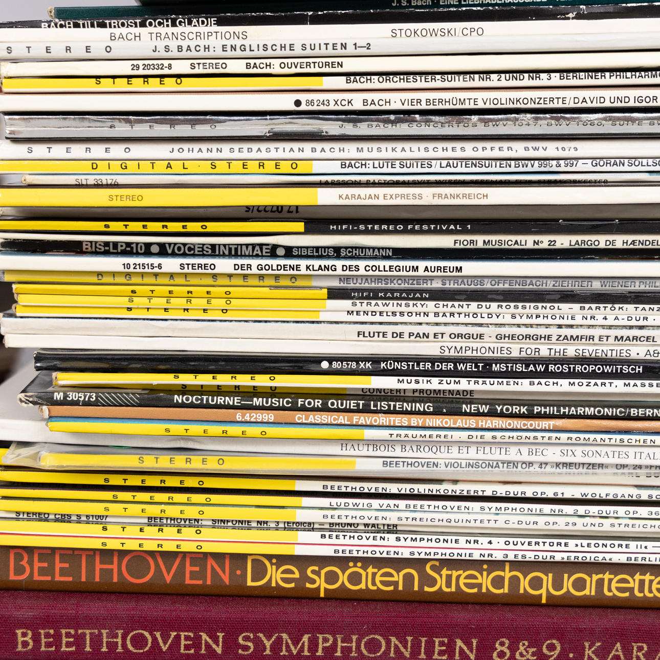 Samling klassiska skivor med fokus på Bach, Beethoven och Mozart.