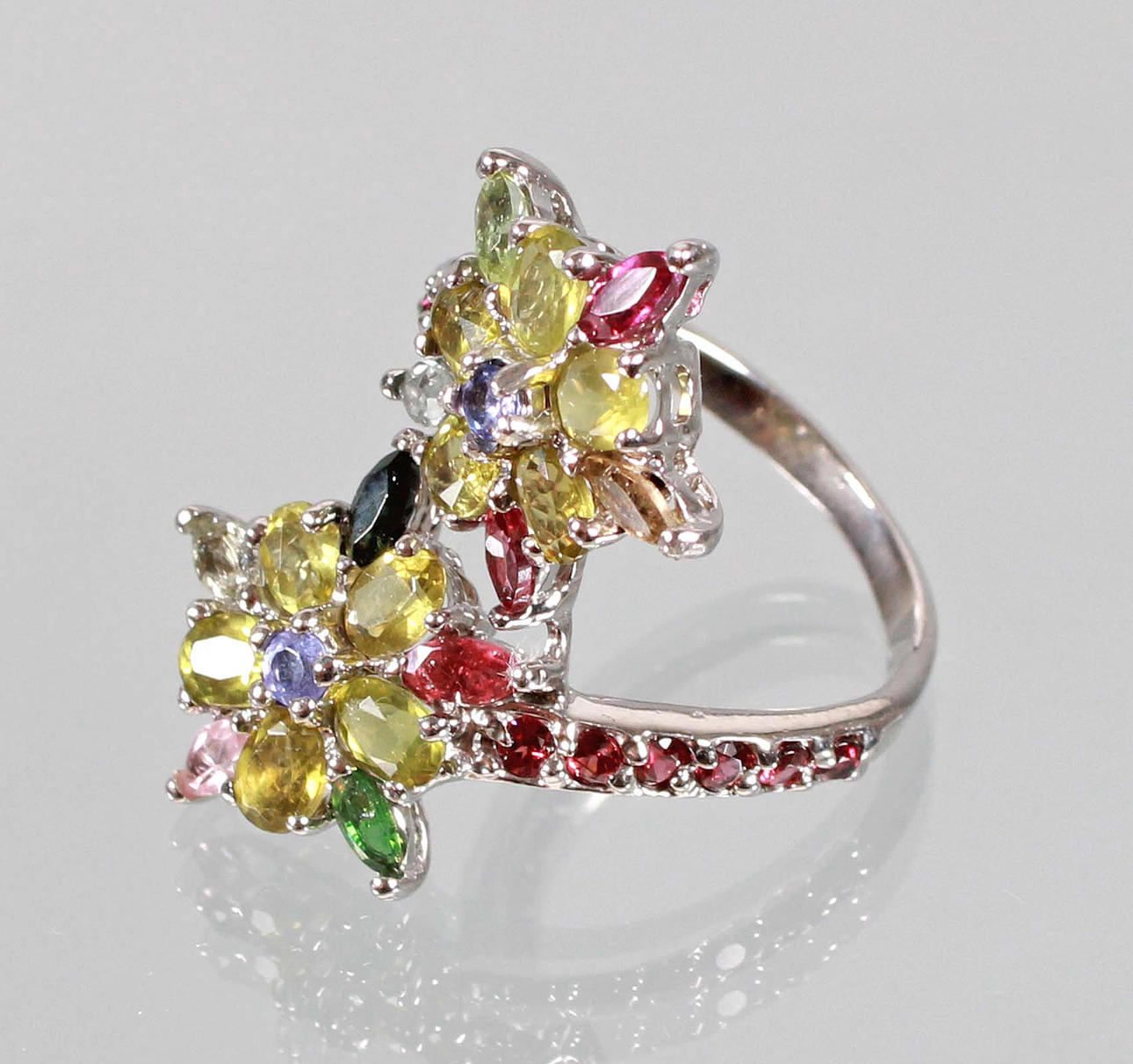 4166473. FLERFÄRGAD BLOMRING, SILVER 925.
